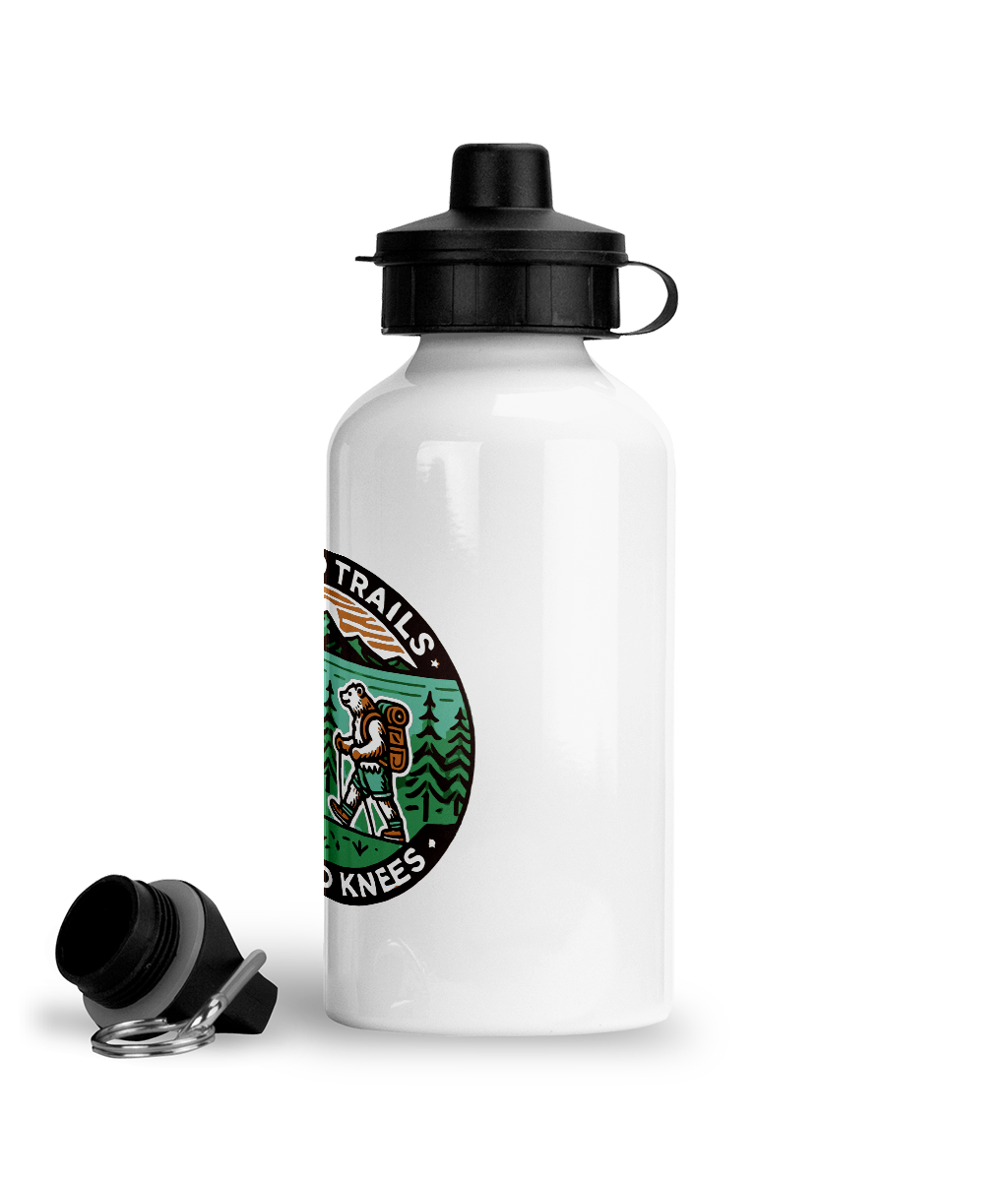 🥾 Bidon sport „No bad trails, just bad knees” – Pentru drumeții care știu gluma… și setea