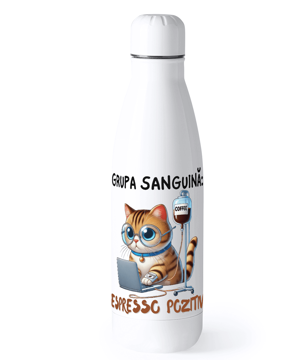 Bidon Termic „Grupa Sanguină: Espresso Pozitiv” – Cadoul Perfect pentru Iubitorii de Cafea! ☕🐱