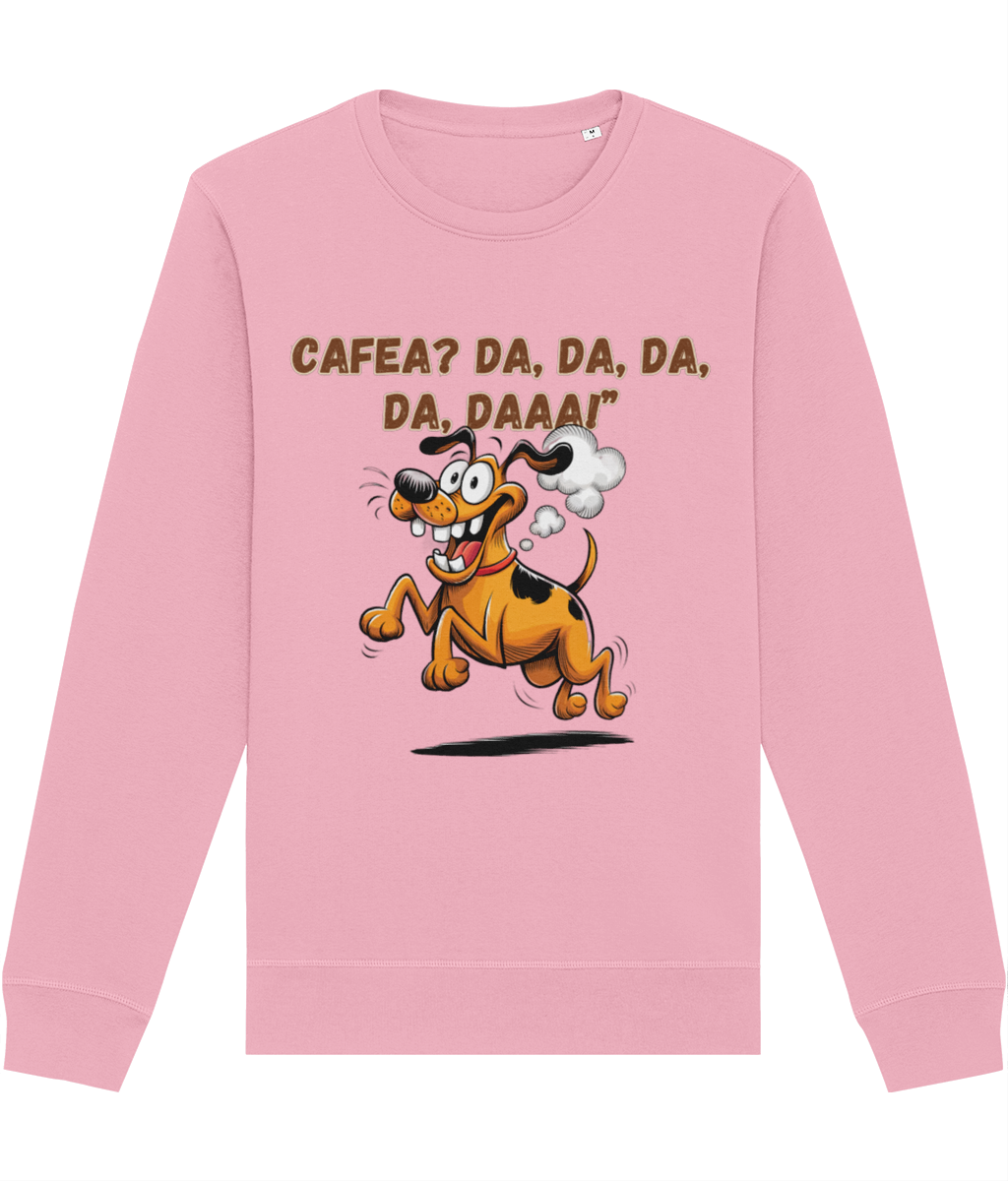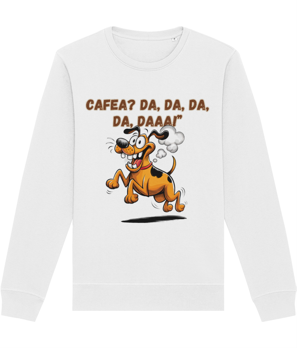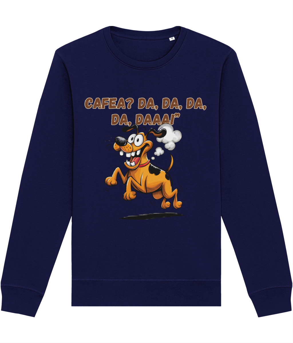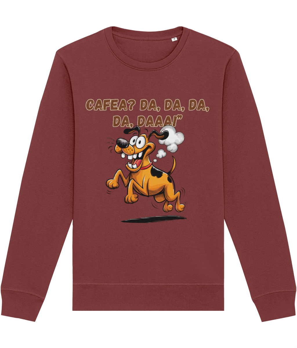 Dacă ai un prieten care devine brusc plin de energie după prima gură de cafea, această bluză este alegerea ideală pentru un cadou memorabil! Designul amuzant, cu un cățel vesel pe fugă și întrebarea „Cafea? Da, da, da, da, daaa!”, reflectă perfect entuziasmul oricărui pasionat de cafea. Fabricată din bumbac organic și poliester reciclat, această bluză este moale, confortabilă și perfectă pentru zilele răcoroase. Croiala unisex o face potrivită pentru oricine, iar materialul de calitate asigură un look impecabil și o purtare îndelungată. Oferă un cadou călduros și plin de umor unui iubitor de cafea!