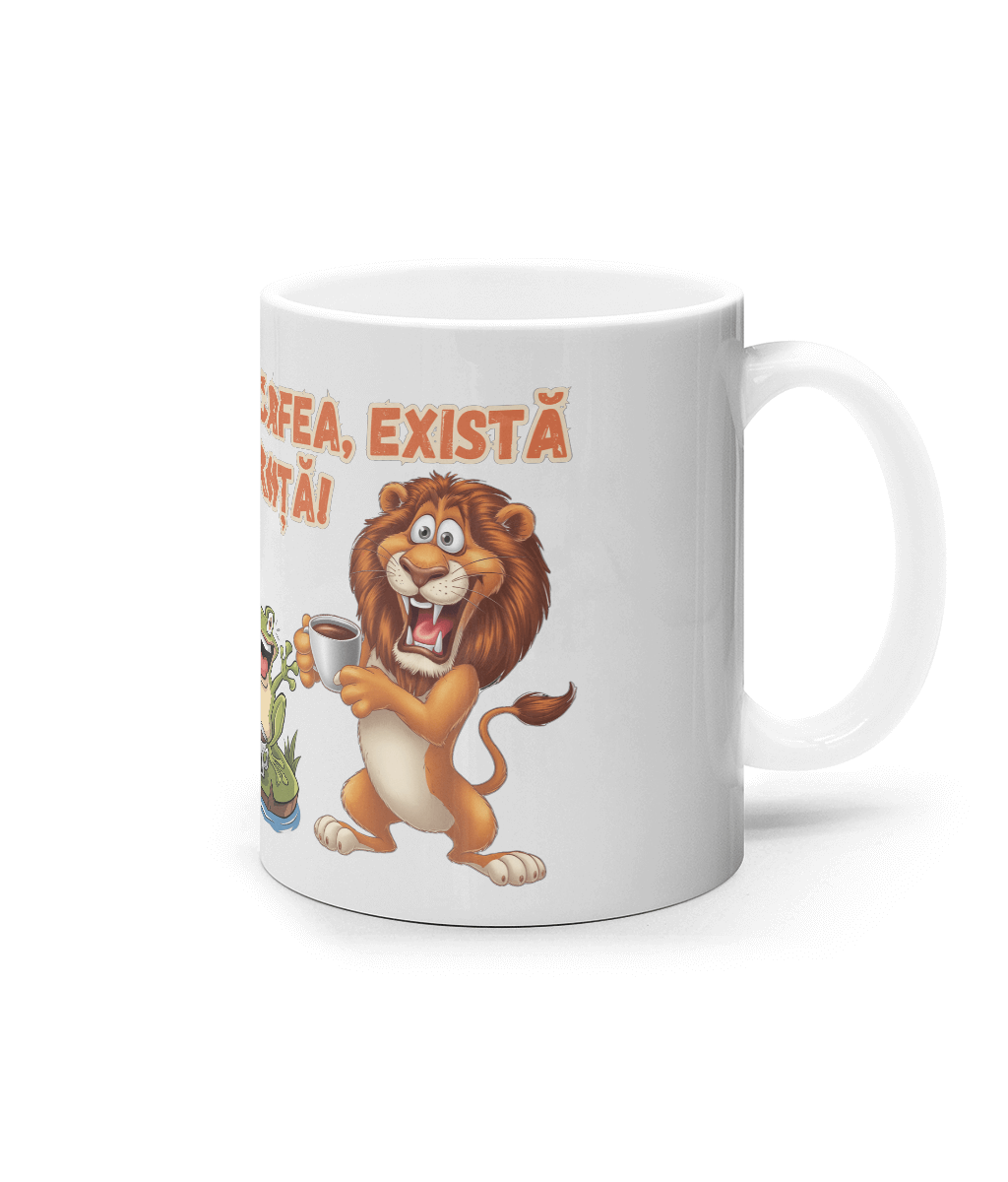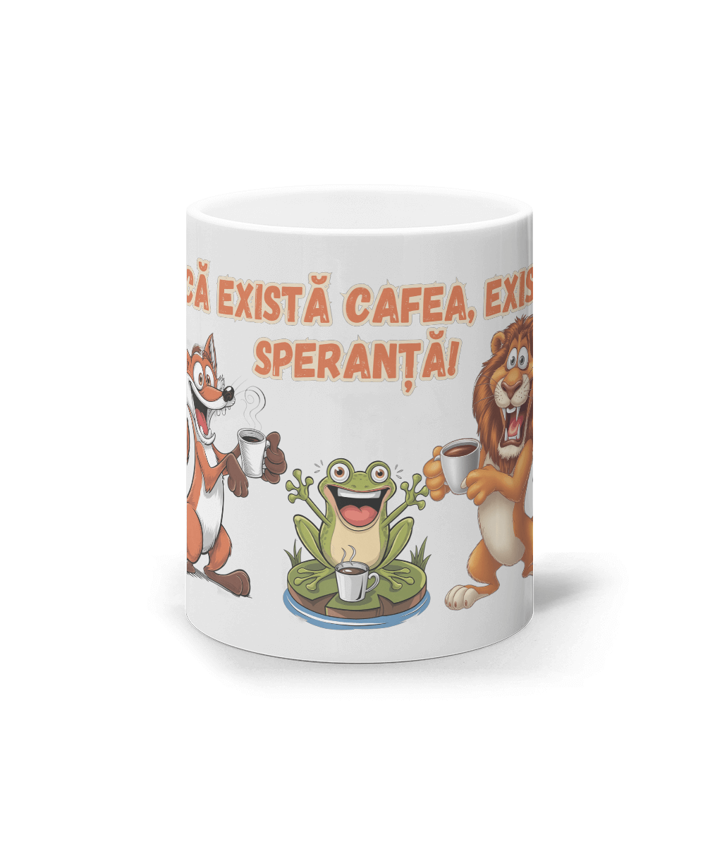 Surprinde un pasionat de cafea cu un cadou plin de veselie! Această cană ceramică albă aduce un strop de optimism în fiecare dimineață, cu un design adorabil ce ilustrează o vulpe, o broască și un leu savurând cafeaua împreună. Un mesaj inspirațional completează perfect acest dar unic, ideal pentru oricine crede că fiecare zi începe mai bine cu o ceașcă de cafea. Realizată din ceramică de calitate și imprimată prin sublimare, această cană rezistă spălării la mașina de vase și utilizării în cuptorul cu microunde, păstrându-și frumusețea timp îndelungat. Un cadou perfect pentru prieteni, colegi sau familie!
