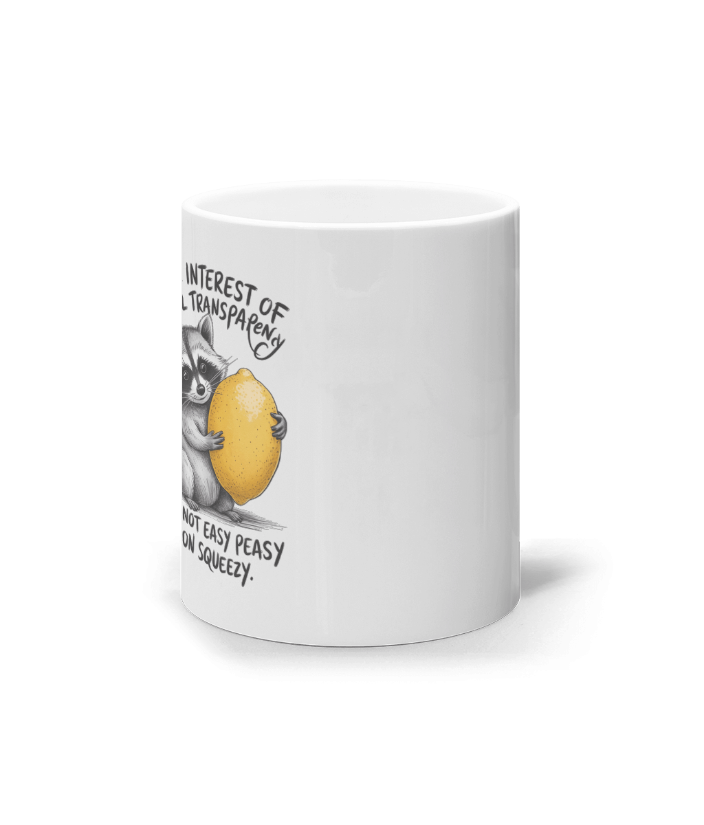 Știi momentele alea când cineva îți spune că „totul e floare la ureche”, dar tu simți că tocmai ai trecut printr-o tornadă? Ei bine, această cană este pentru acele zile! Cu un raton adorabil care ține o lămâie între lăbuțe și un mesaj sincer – „In the interest of full transparency, it was not easy peasy lemon squeezy” – această cană aduce un zâmbet pe fața oricui. Ideală pentru diminețile grele, pentru colegii care au mereu o poveste amuzantă despre cum s-a stricat totul sau pentru prietenii care trec printr-o „săptămână din aia”.