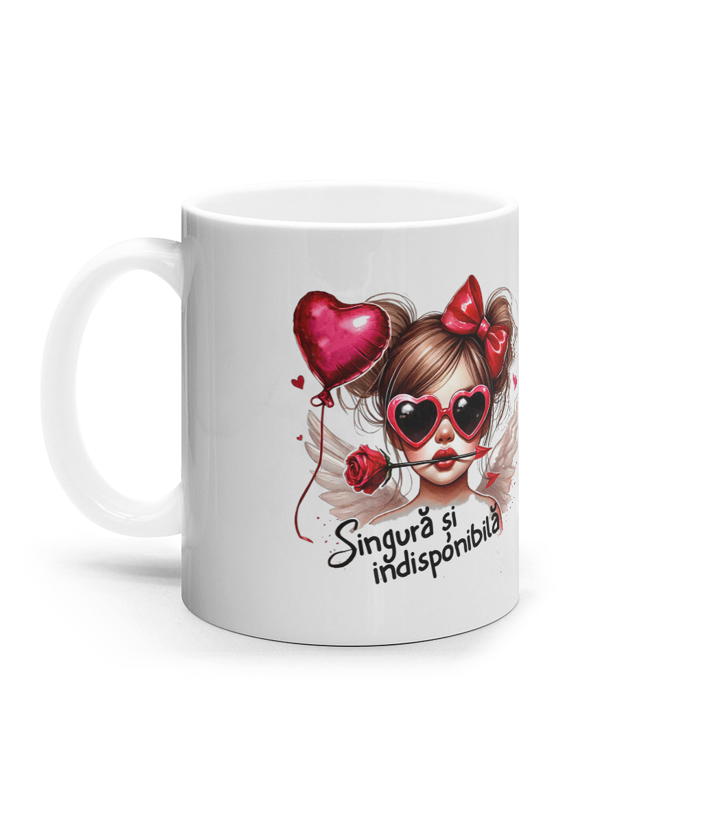 🎁 Cană „Singură și Indisponibilă” – Cadoul ideal pentru Ziua Îndrăgostiților!