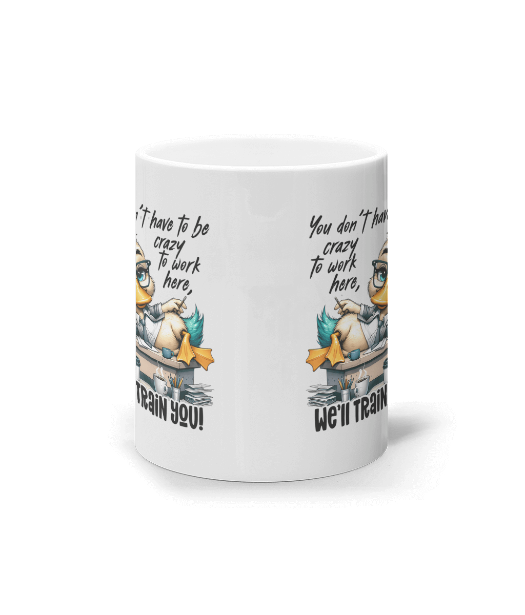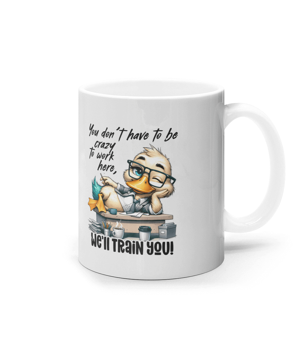 🦆 Cană „We’ll Train You” – Umor de birou, direct de pe birou