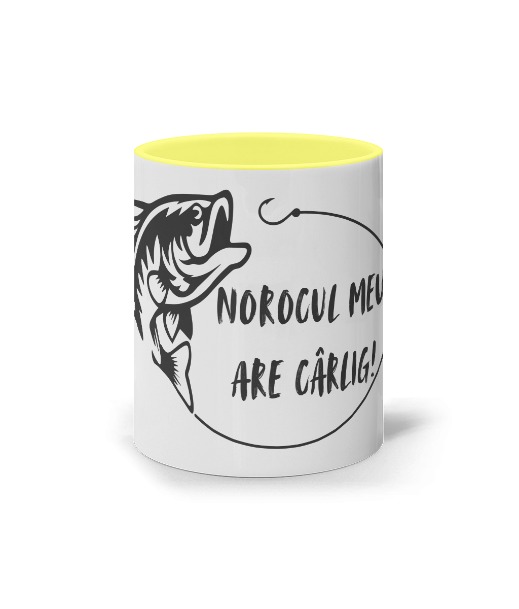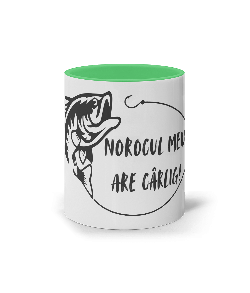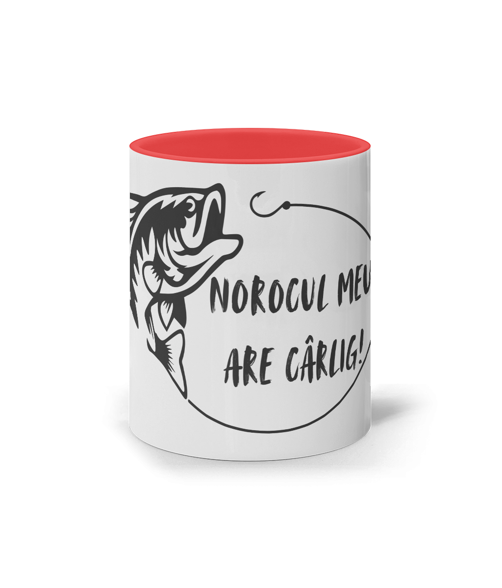 ☕ Cană ceramică colorată „Norocul meu are cârlig” – Pentru dimineți cu zâmbet