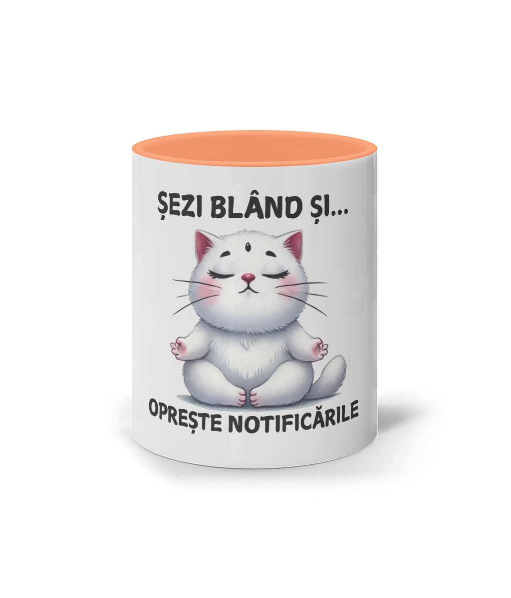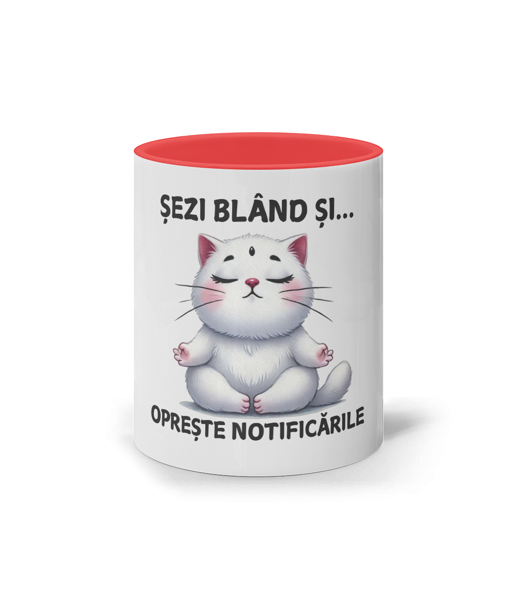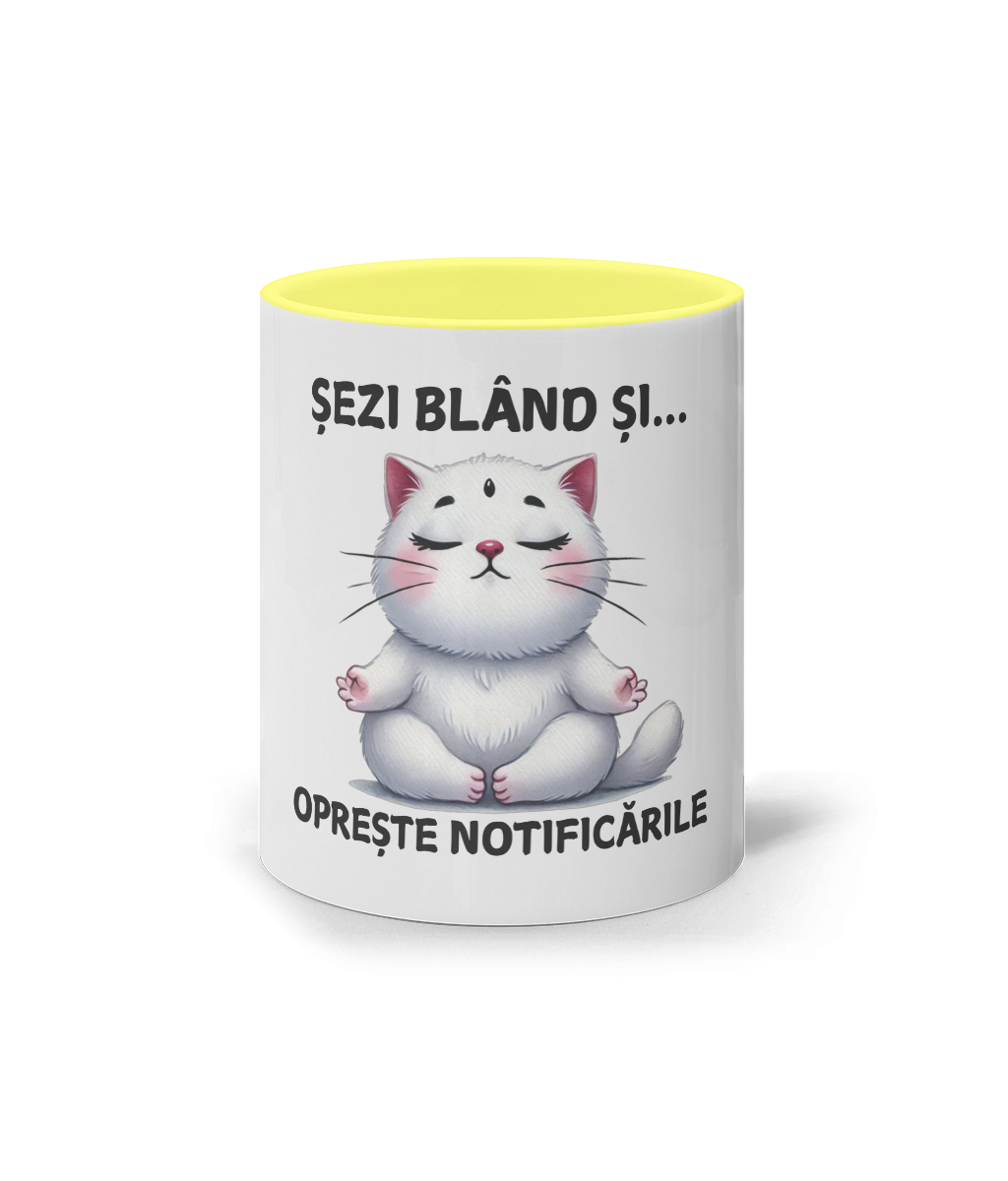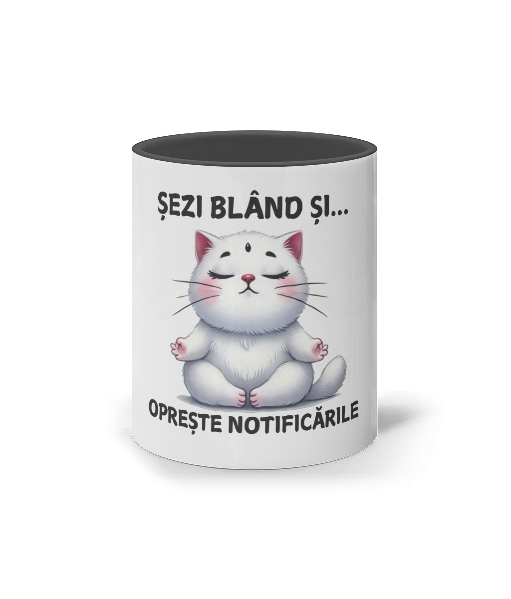 🐱 Cană „Sezi blând și… oprește notificarile” – Zenul începe cu o înghițitură