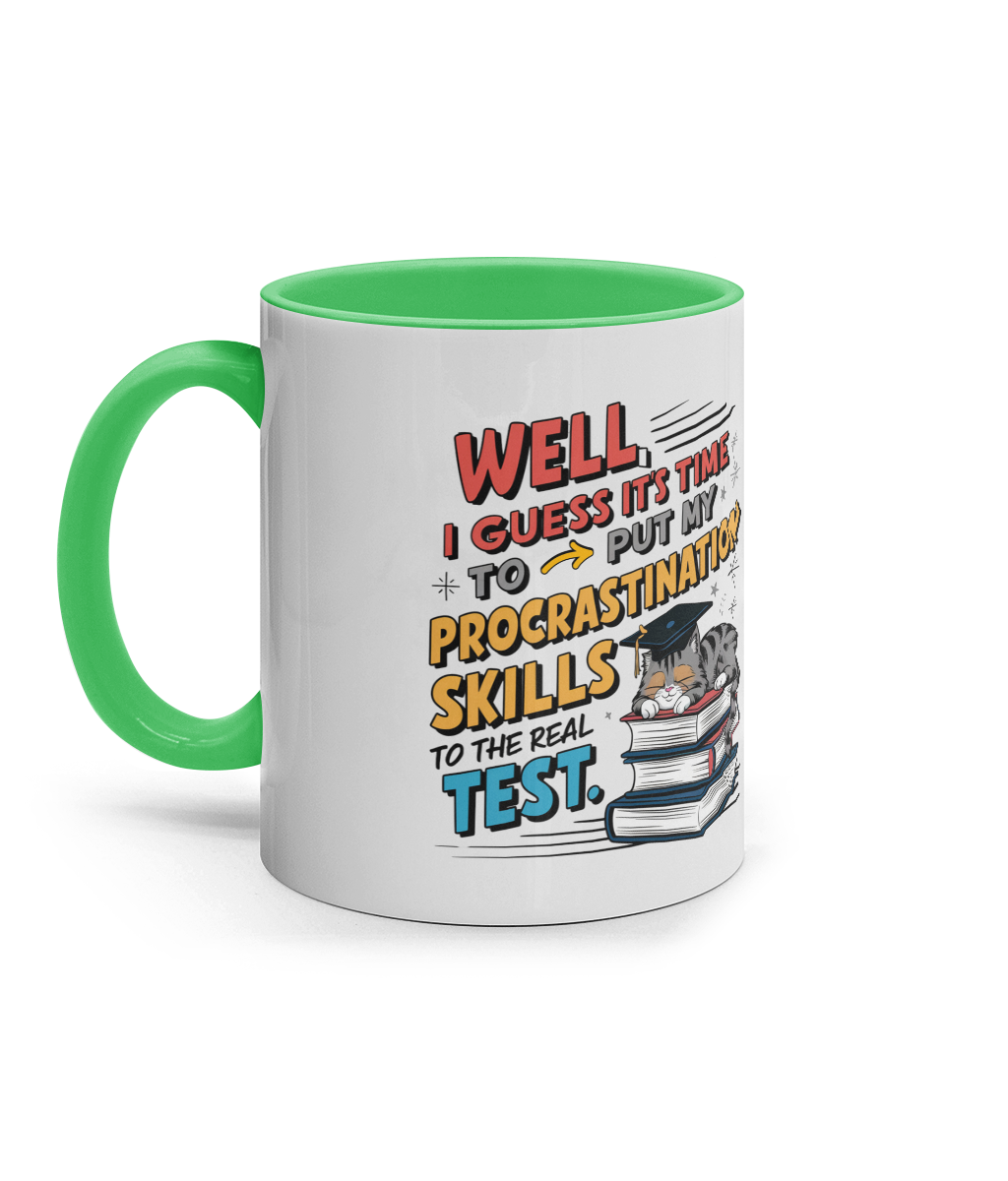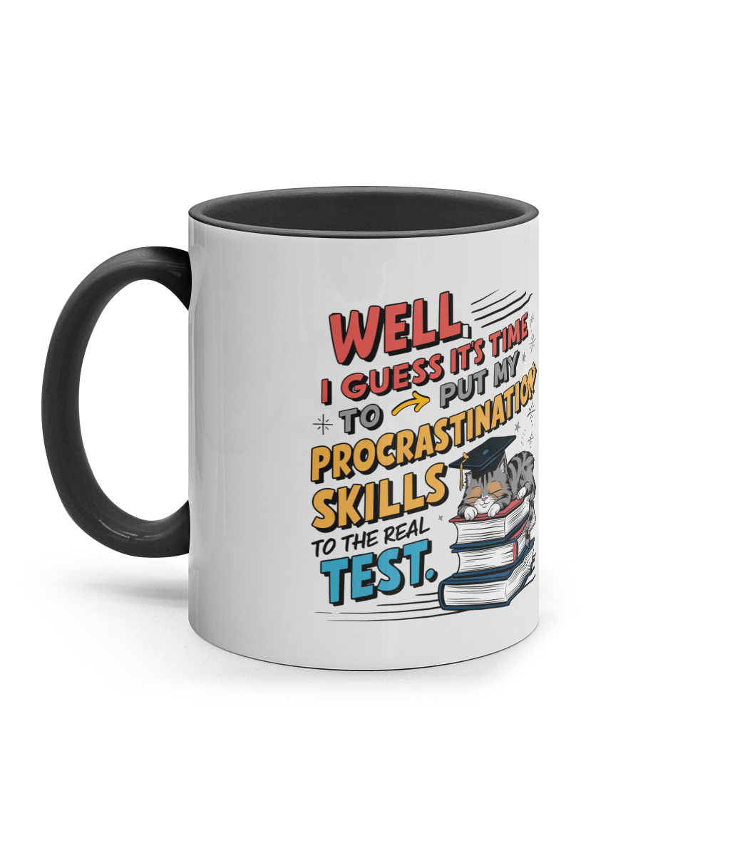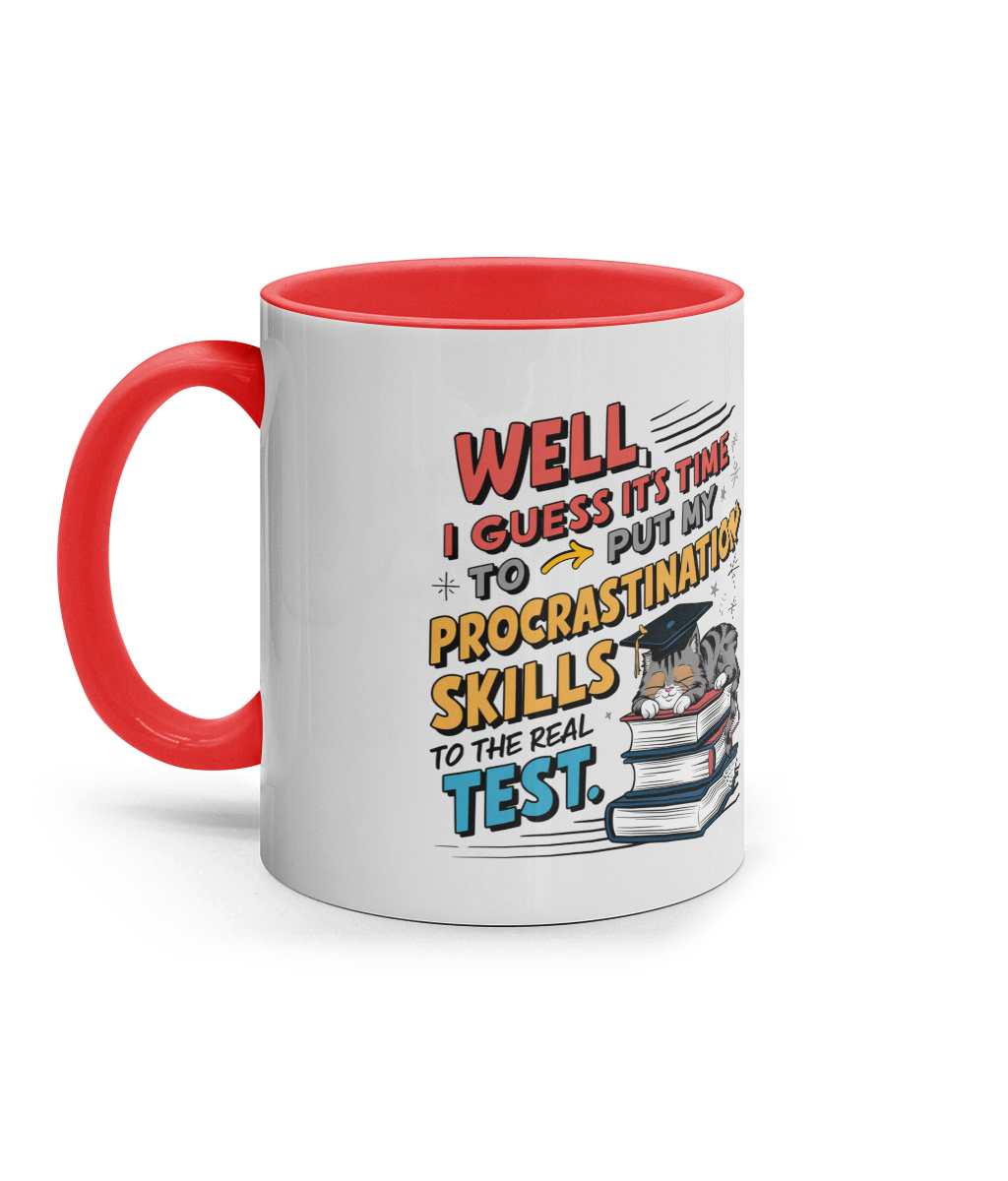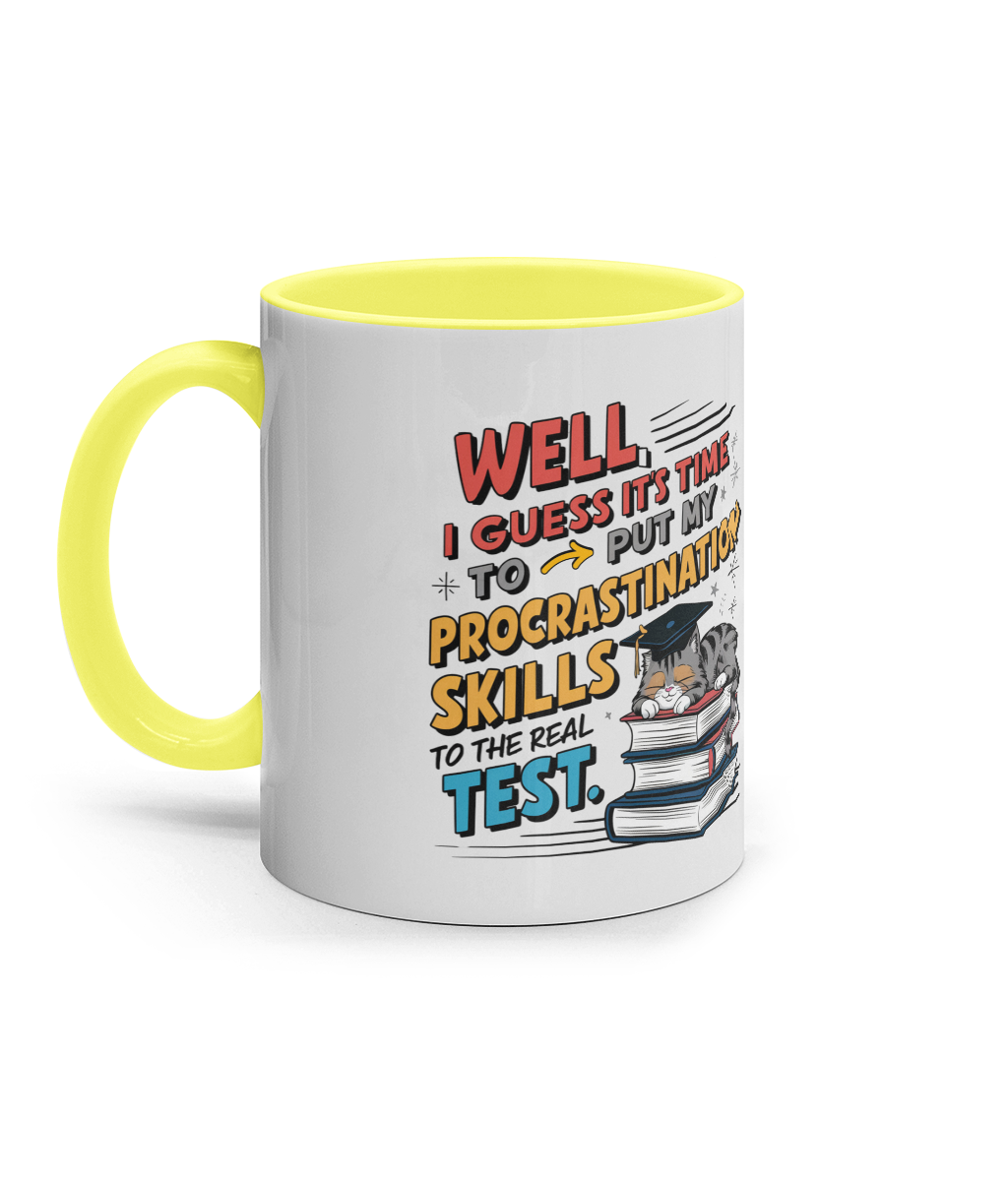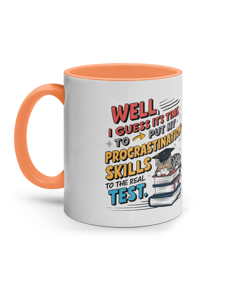 Cană ceramică colorată „Time to put my procrastination skills to test”