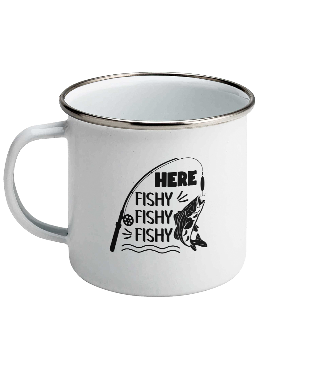 Când ziua începe devreme, cu rouă pe iarbă și undița pregătită, ai nevoie de o cană care să țină pasul cu tine. Cana emailată „Here fishy, fishy, fishy” e companionul perfect pentru pescarii cu umor și răbdare. Ușoară, rezistentă și plină de personalitate, e făcută pentru momentele în care îți bei cafeaua și chemi peștii… cu șarm.