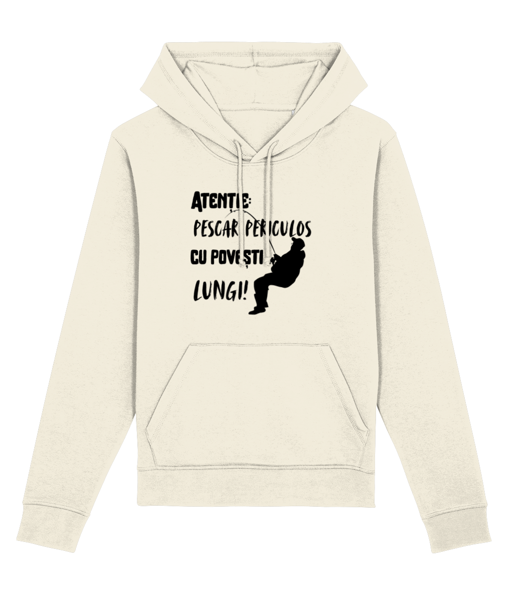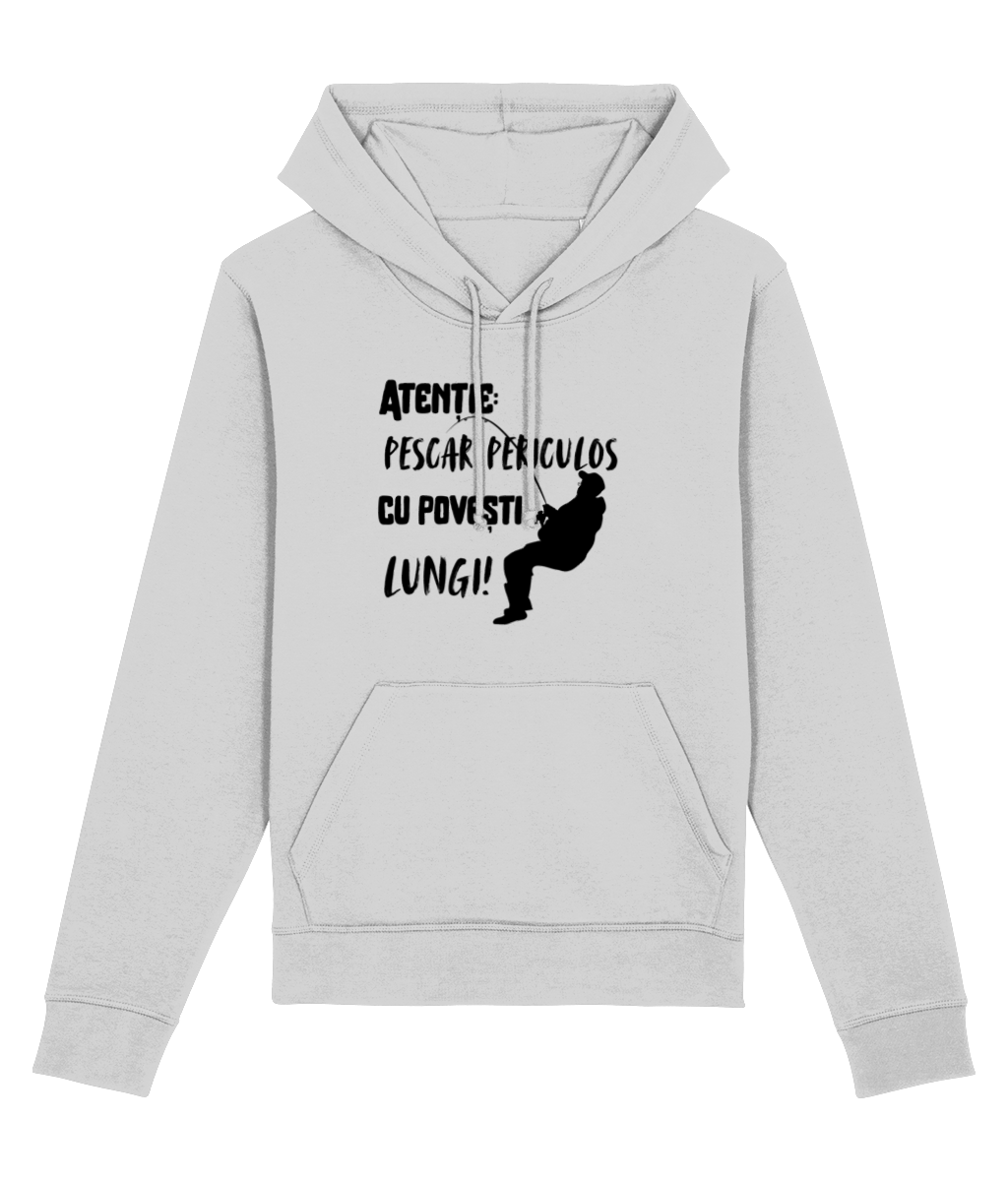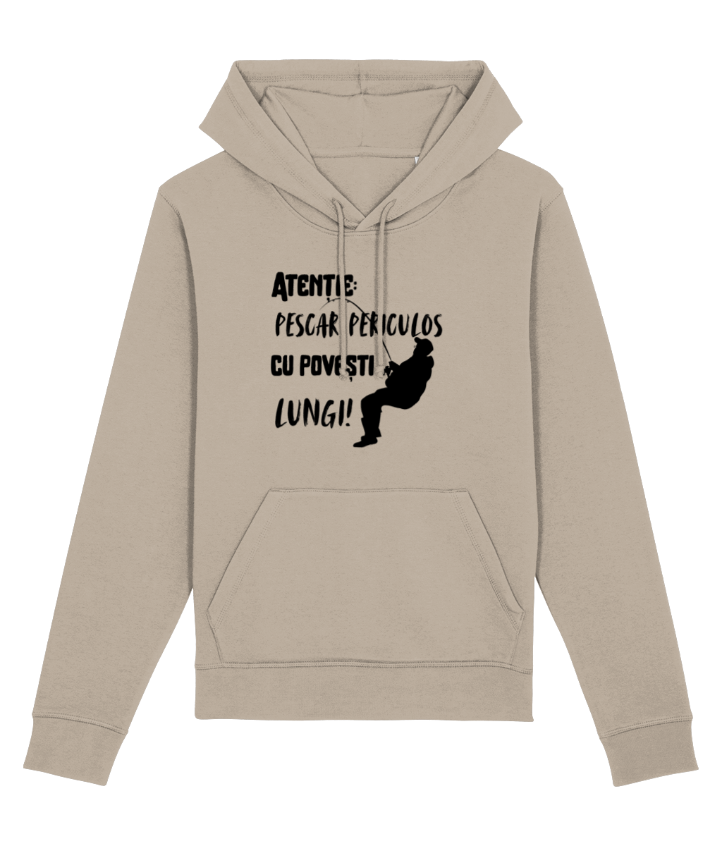 🎣 Hanorac unisex „Atenție: pescar periculos cu povești lungi” – Cald pe exterior, și mai cald la povești
