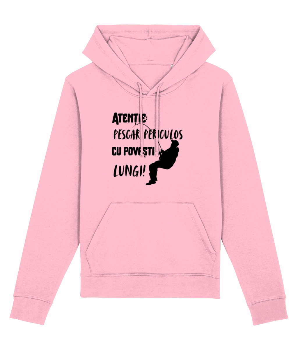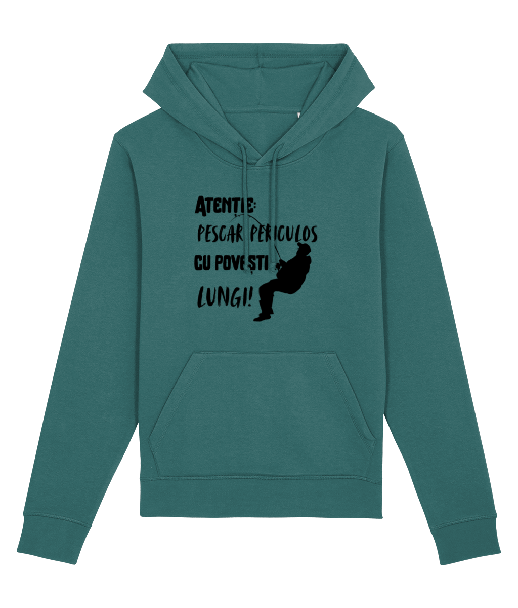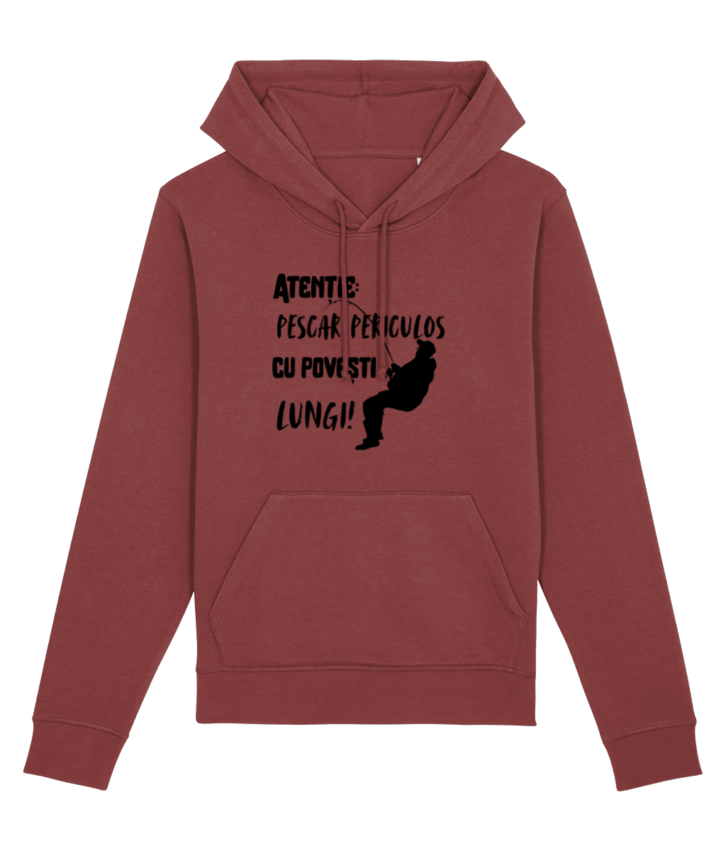 🎣 Hanorac unisex „Atenție: pescar periculos cu povești lungi” – Cald pe exterior, și mai cald la povești