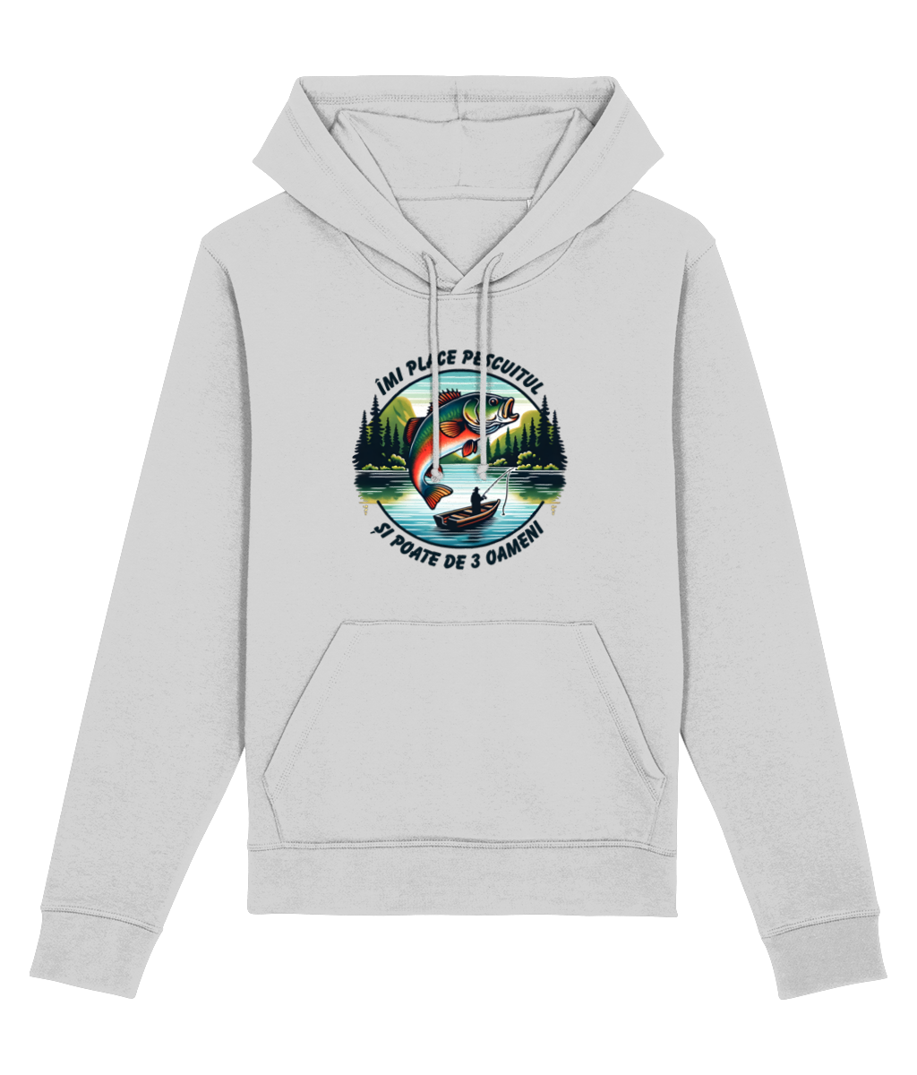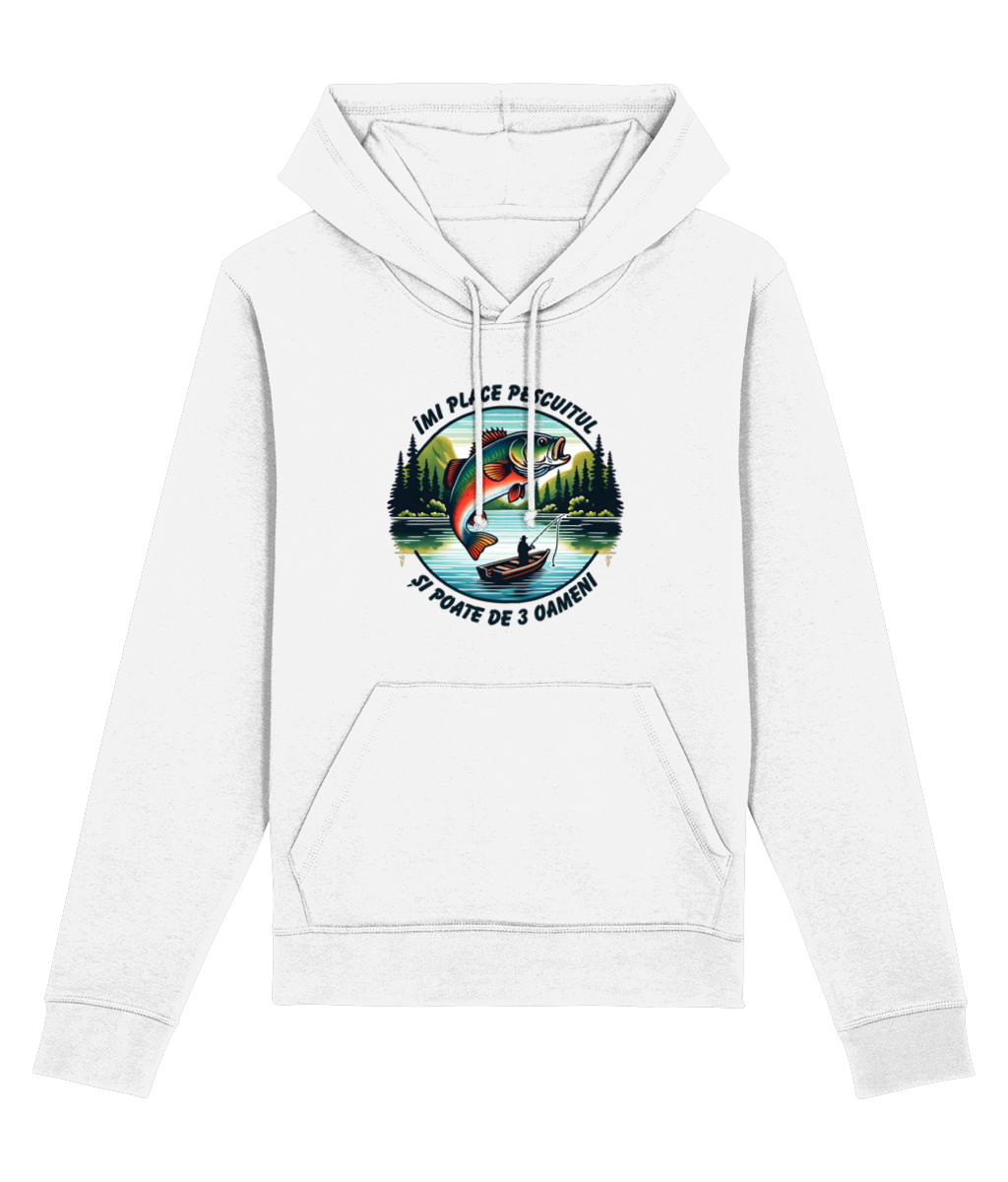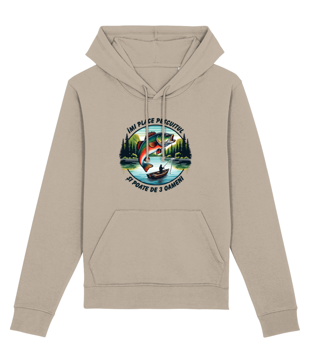 🎣 Hanorac „Îmi place pescuitul și poate de 3 oameni” – Pentru cei care și-ar muta biroul pe baltă