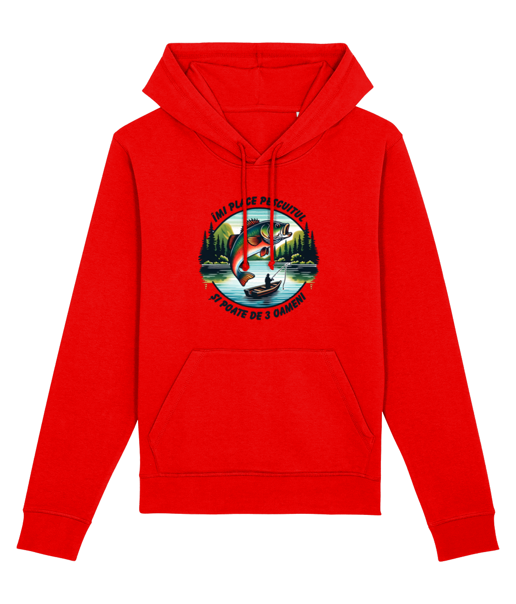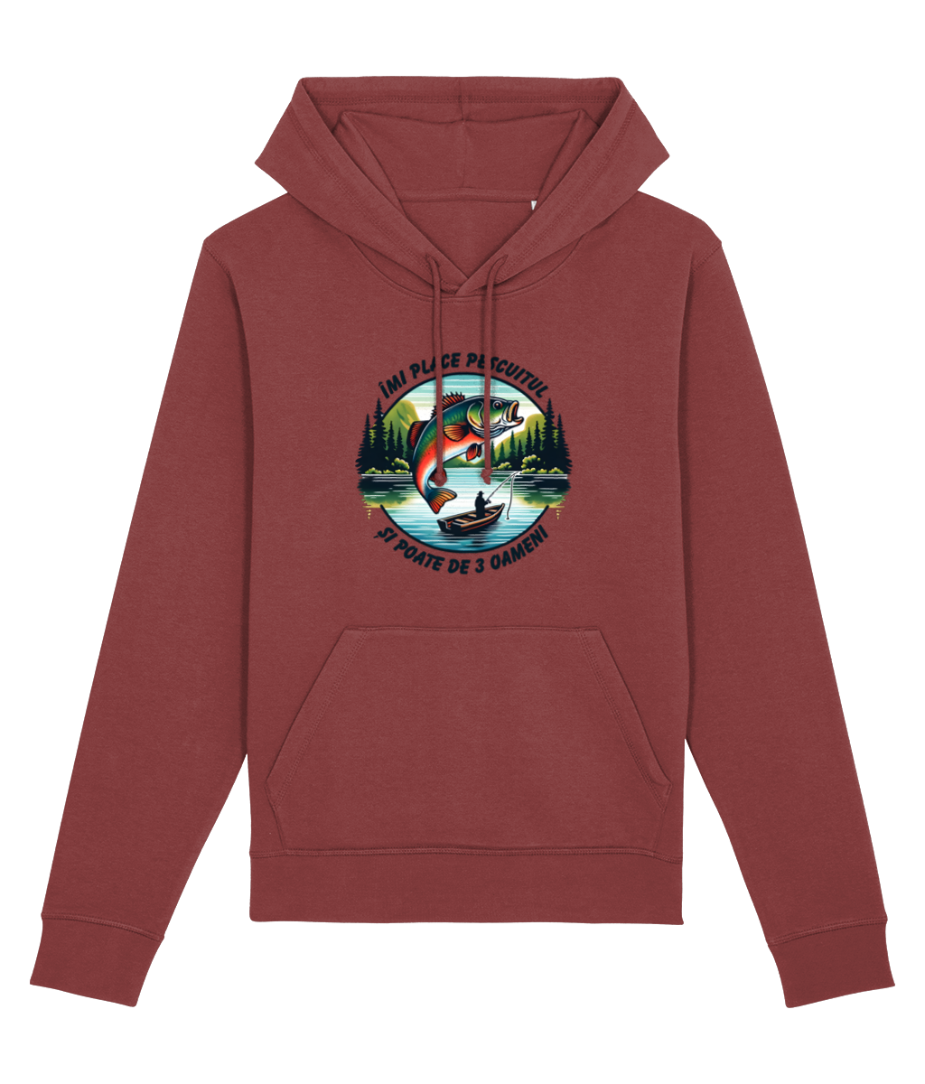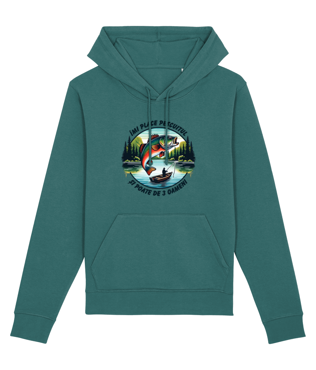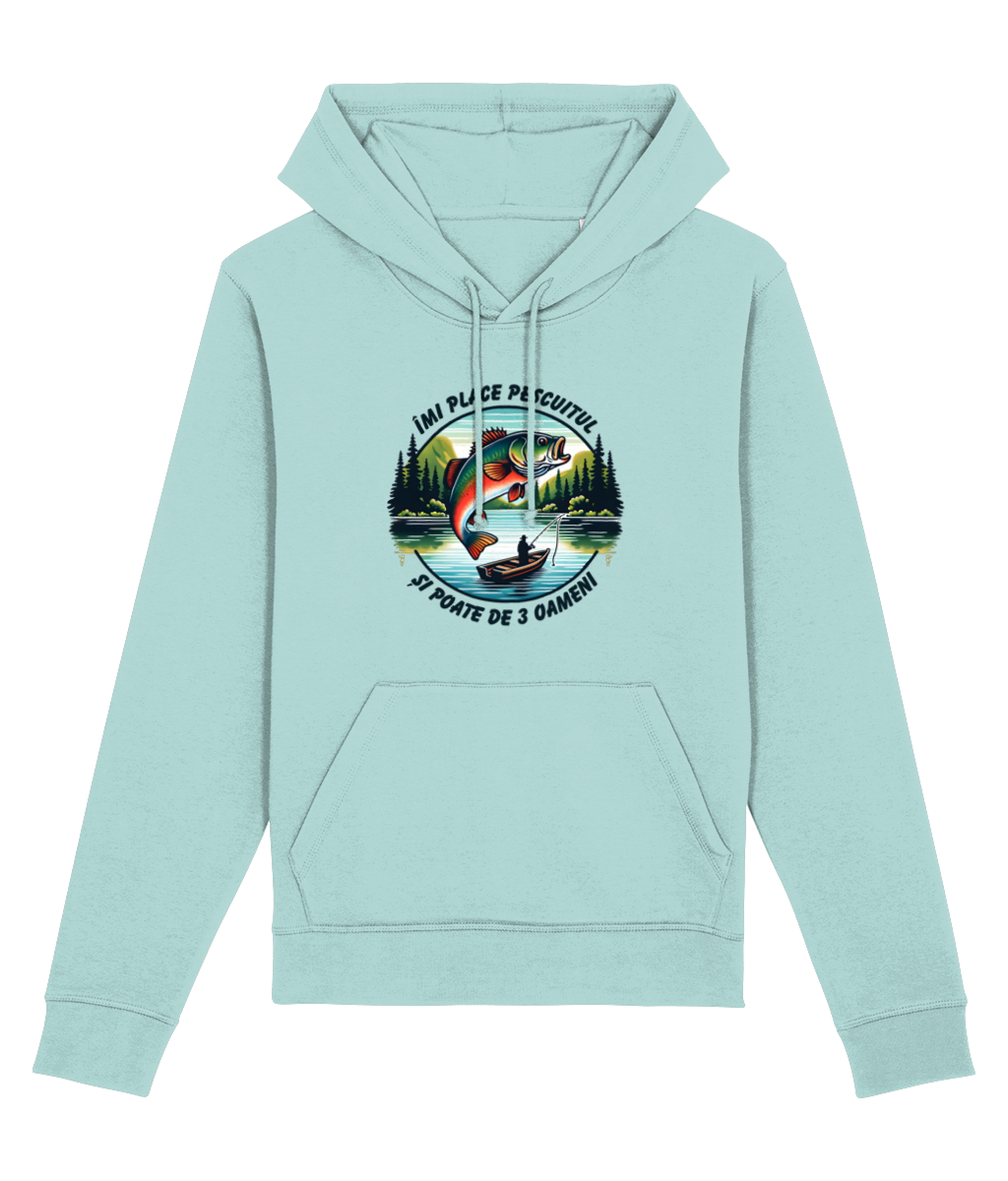 🎣 Hanorac „Îmi place pescuitul și poate de 3 oameni” – Pentru cei care și-ar muta biroul pe baltă