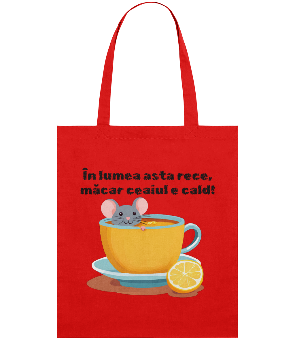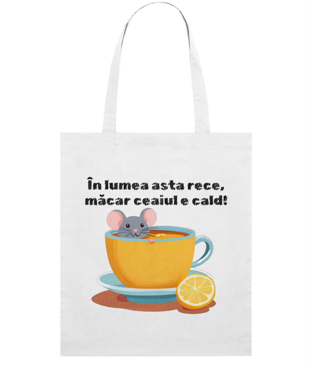 Dăruiește această sacoșă unei persoane dragi sau ia-ți una pentru a-ți aminti mereu că, oricât de rece ar fi lumea, măcar ceaiul e cald! ☕🐭💛