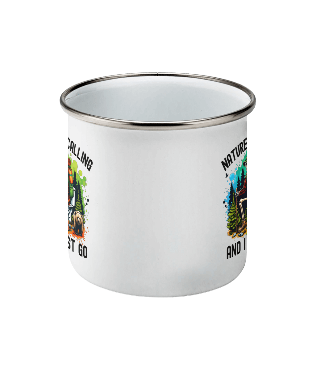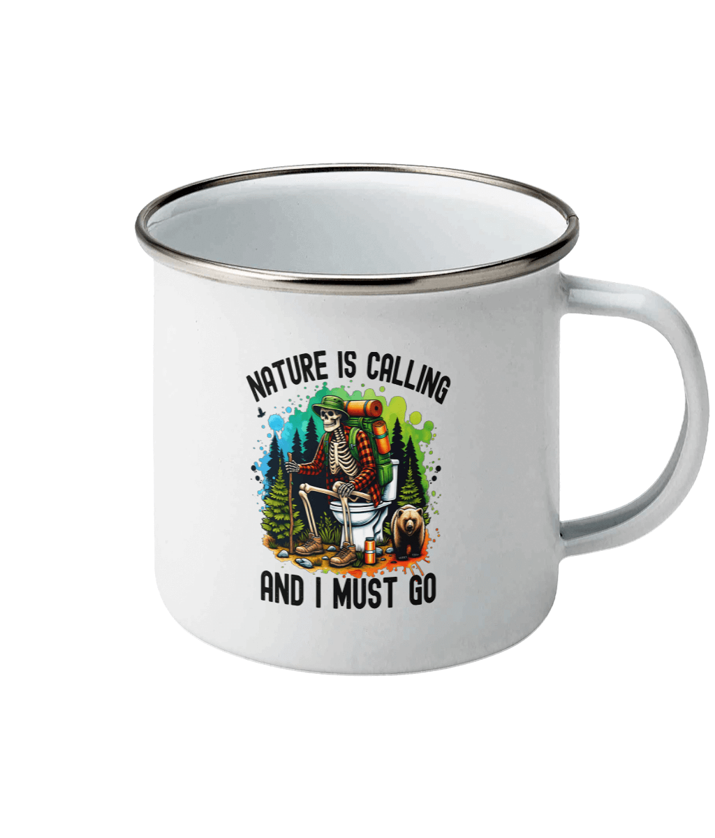 ☕ Cană emailată „Nature is calling and I must go” – Pentru aventurierii cu… simțul umorului