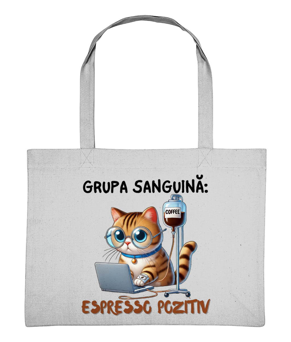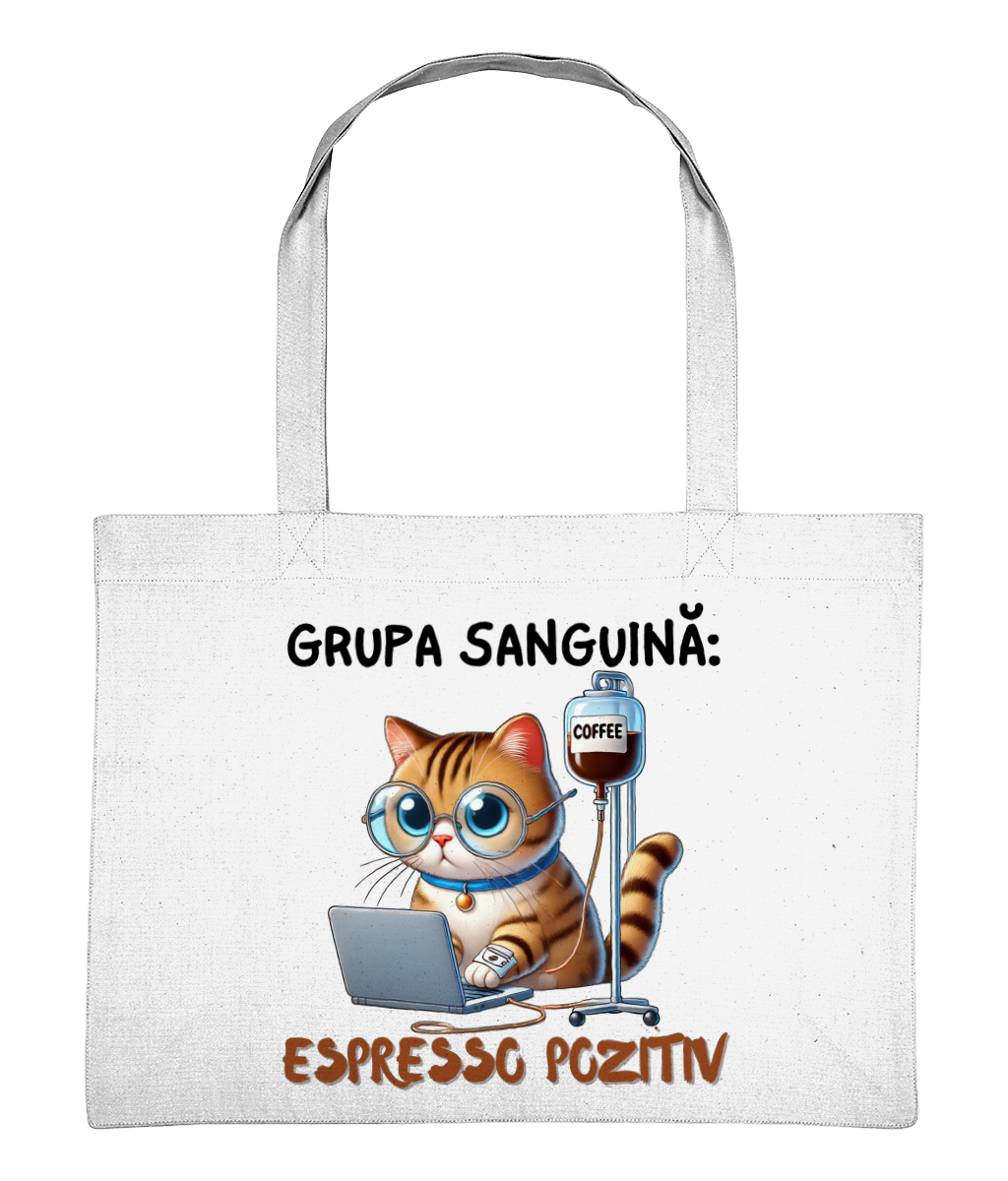 Sacoșă de cumpărături din bumbac ,,Grupa Sanguină Espresso Pozitiv”
