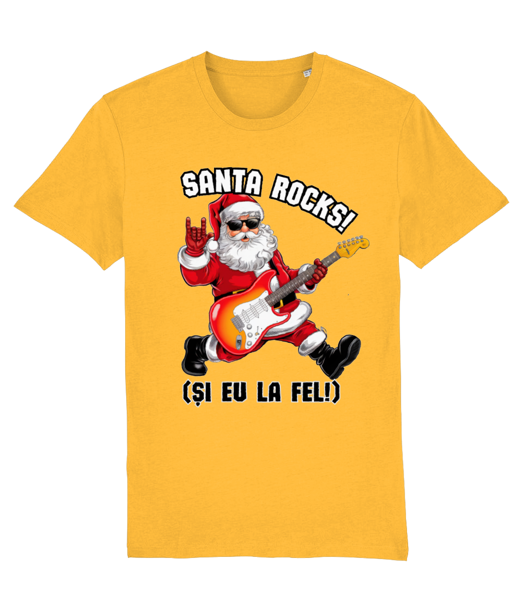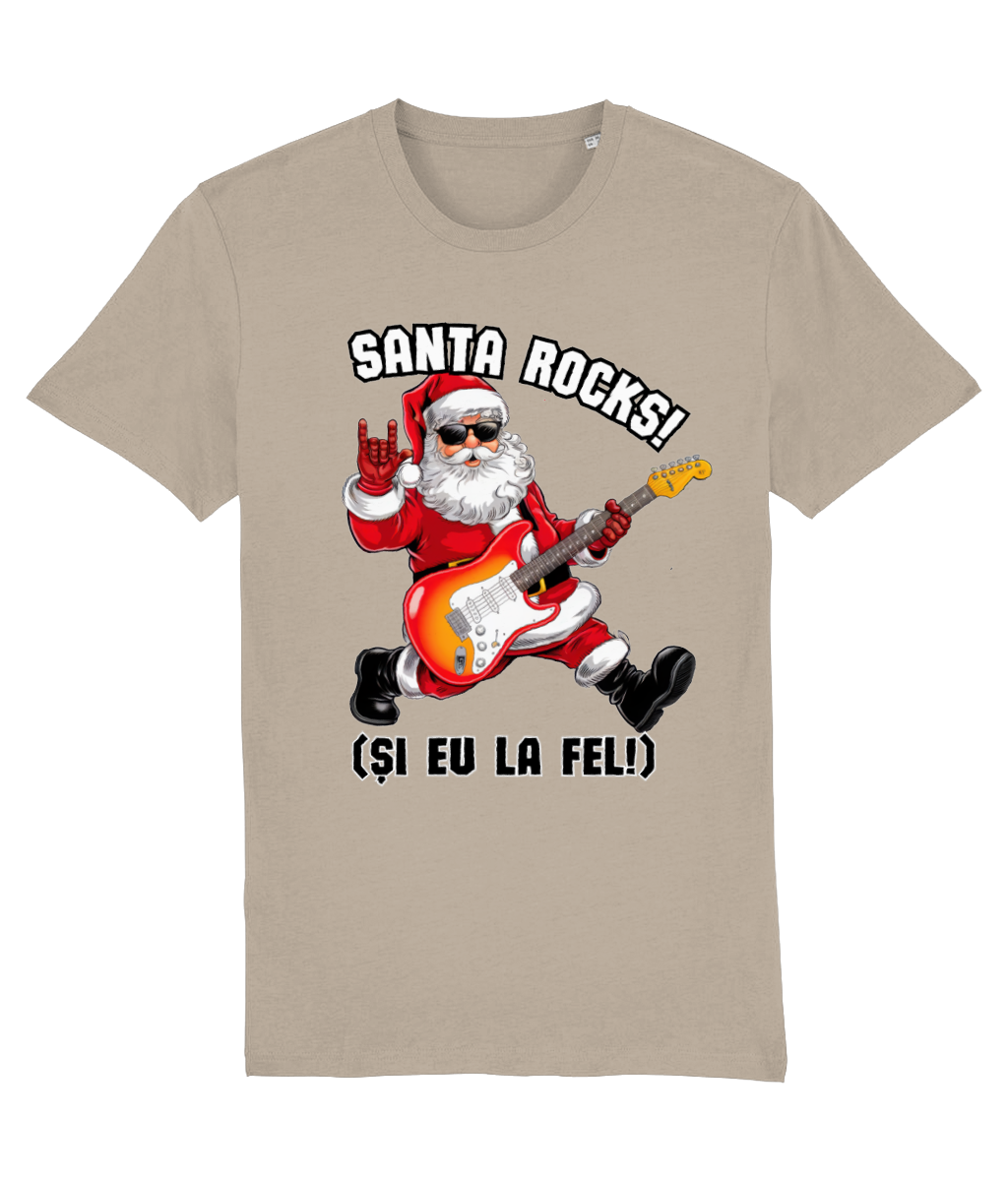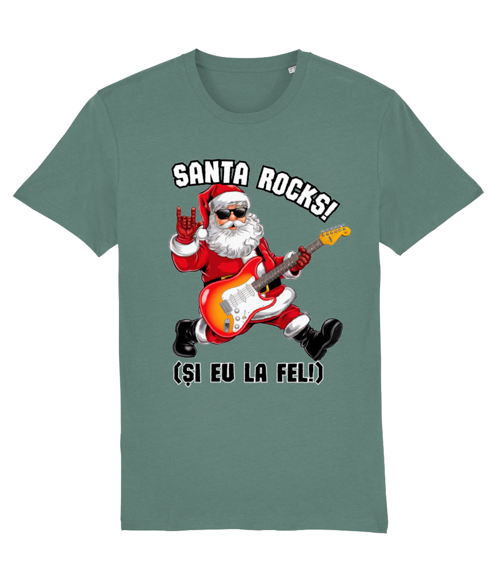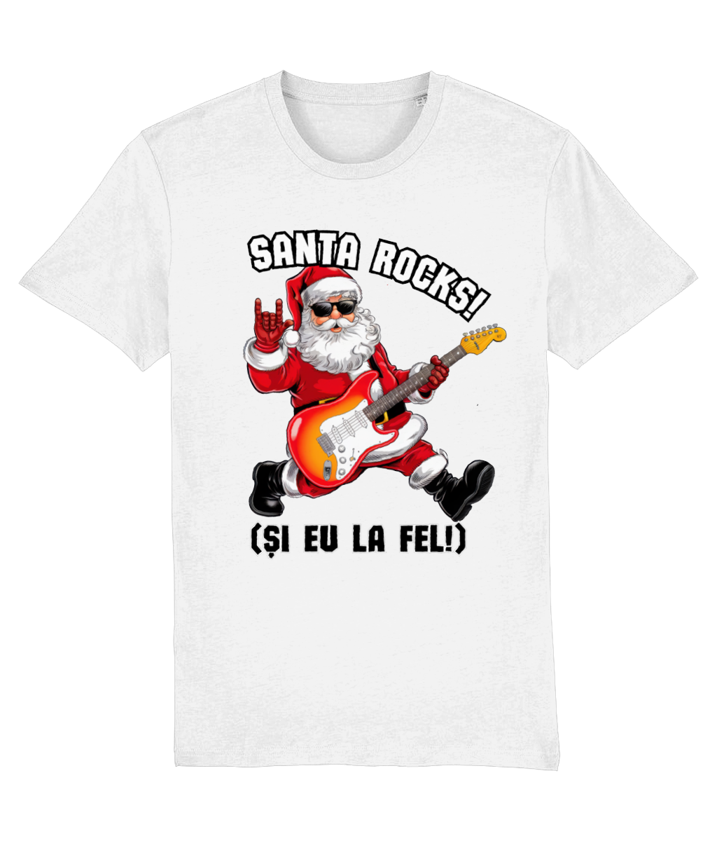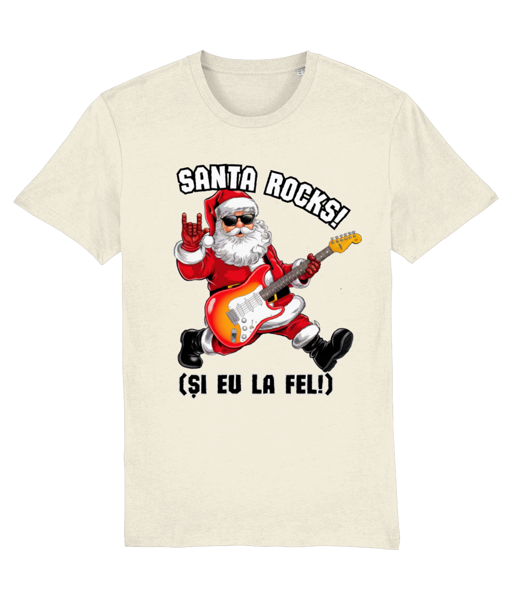 Crăciunul nu înseamnă doar colinde și luminițe – uneori e nevoie și de puțin rock’n’roll! Acest tricou premium, realizat din 100% bumbac organic, este alegerea perfectă pentru cei care vor să sărbătorească cu atitudine. Cu un design original care îl arată pe Moș Crăciun cântând la chitară și mesajul „Santa Rocks! (Și eu la fel!)”, este cadoul ideal pentru fanii muzicii și ai spiritului rebel.