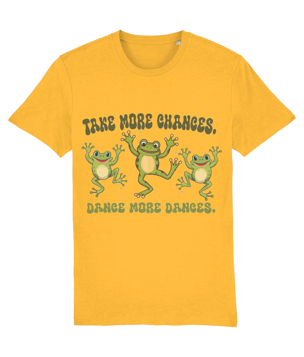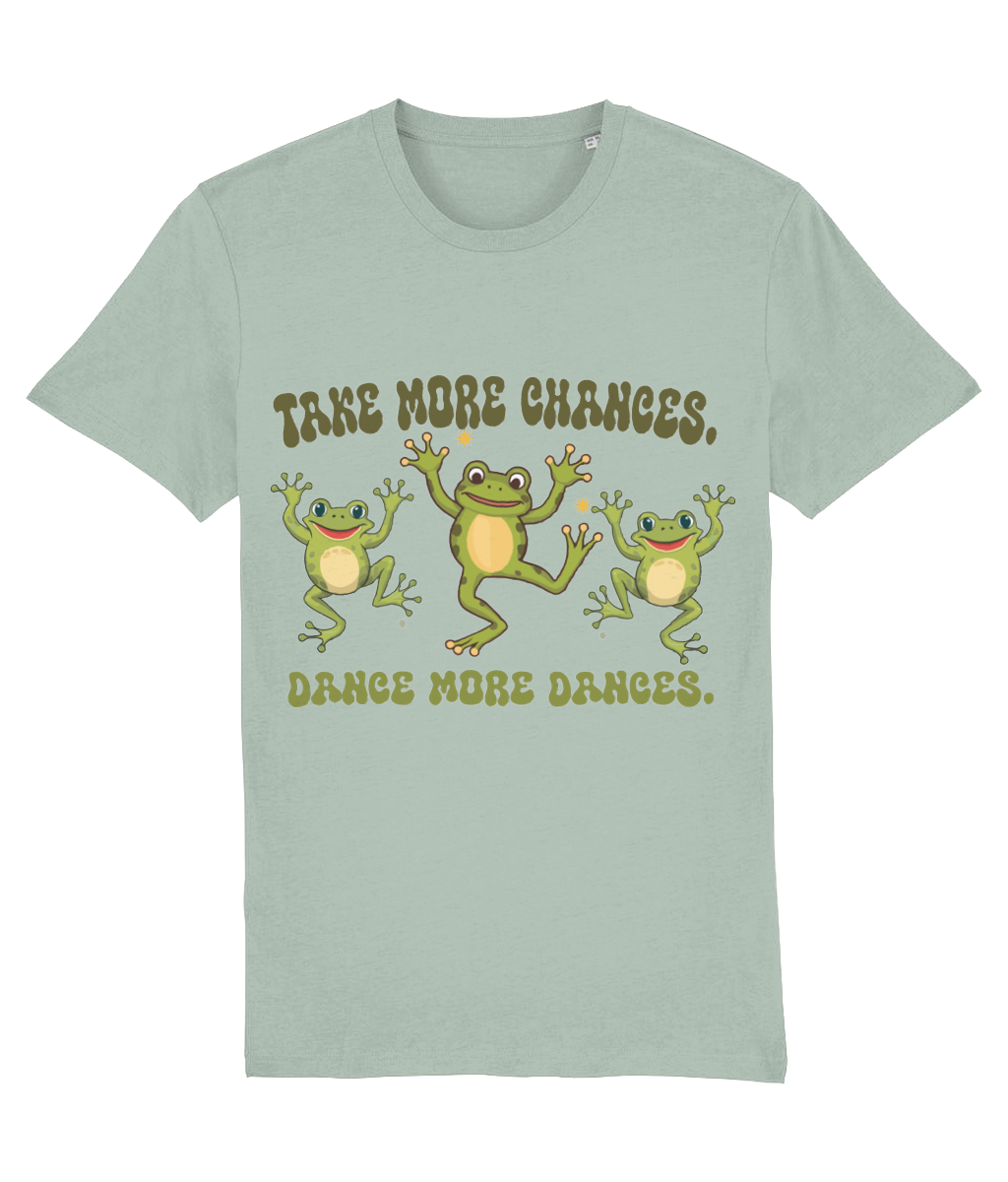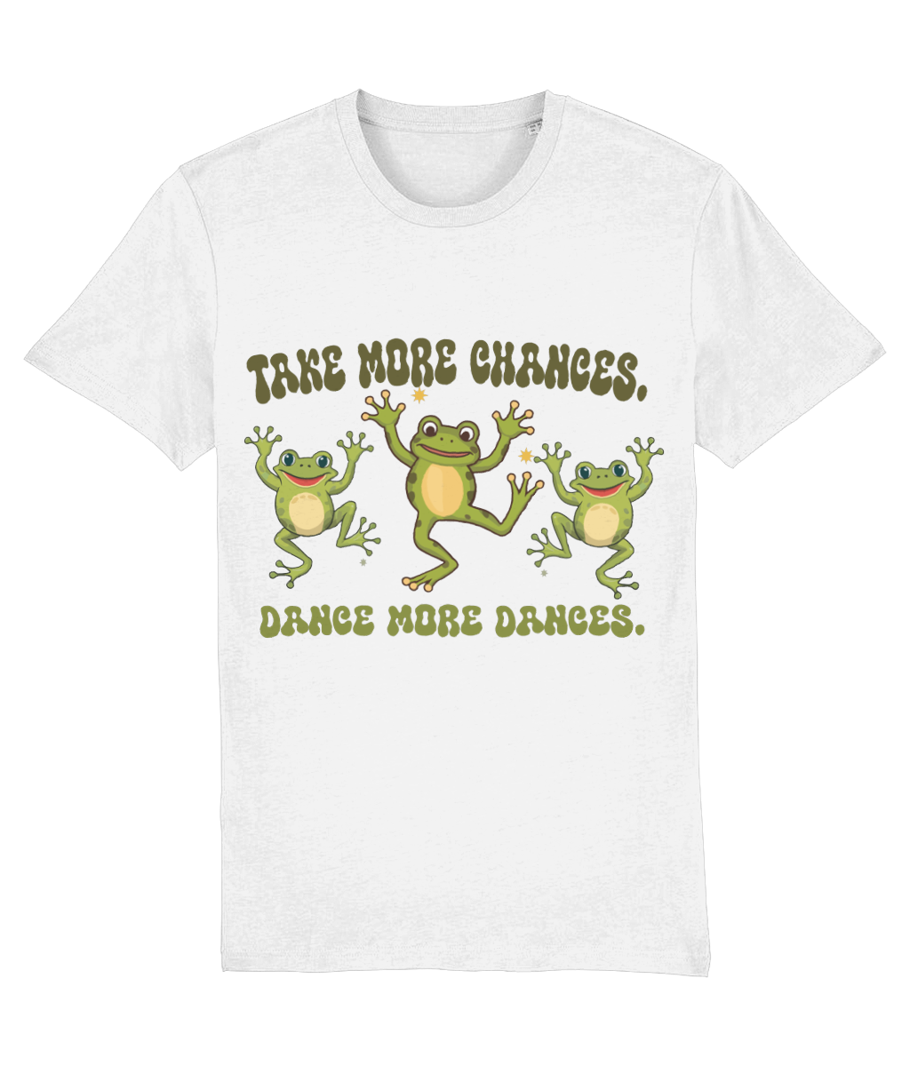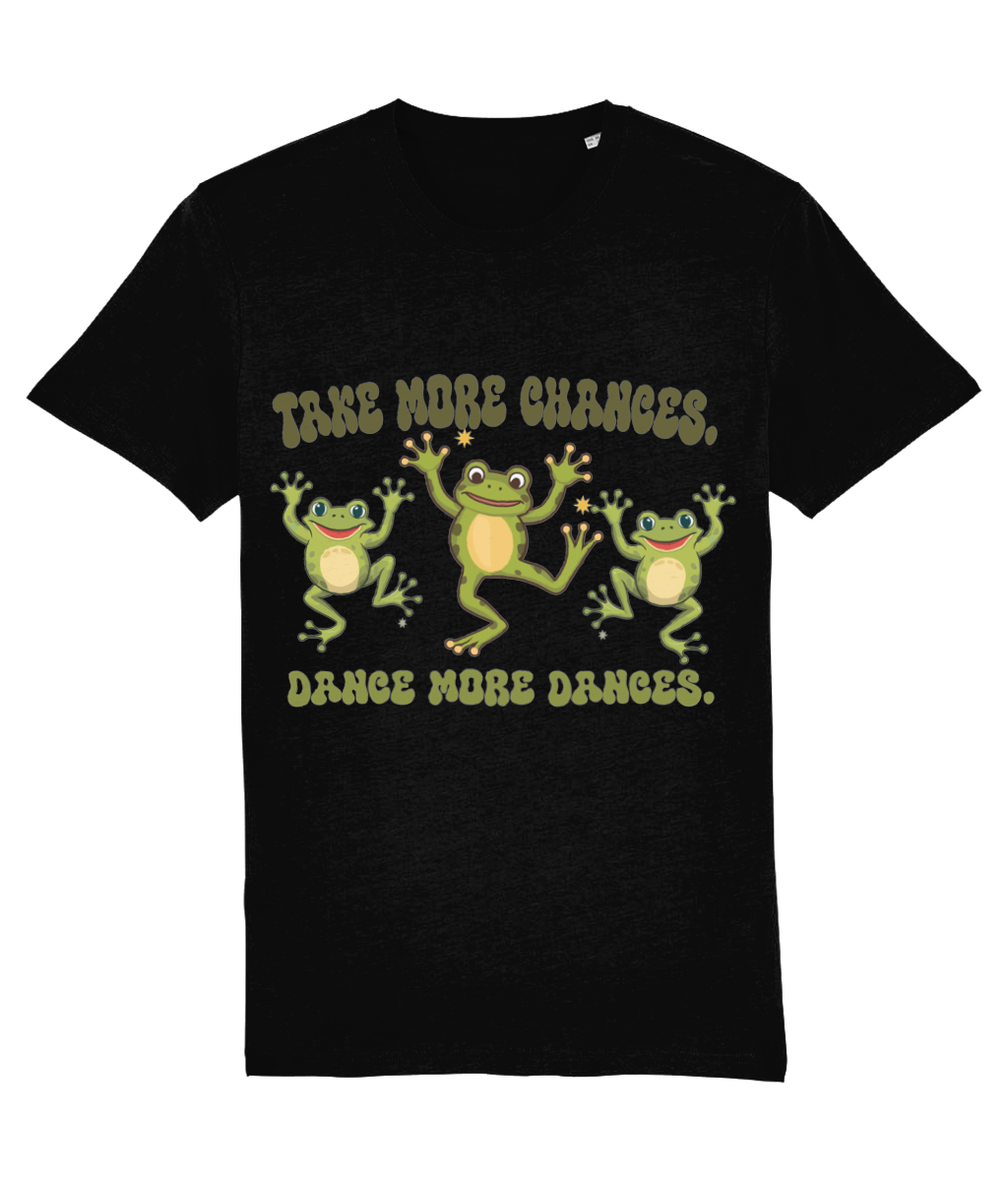 Cu un design jucăuș, trei broscuțe puse pe dans și un mesaj motivațional, acest tricou este un statement pentru toți cei care cred că dansul înseamnă libertate, bucurie și curaj!
