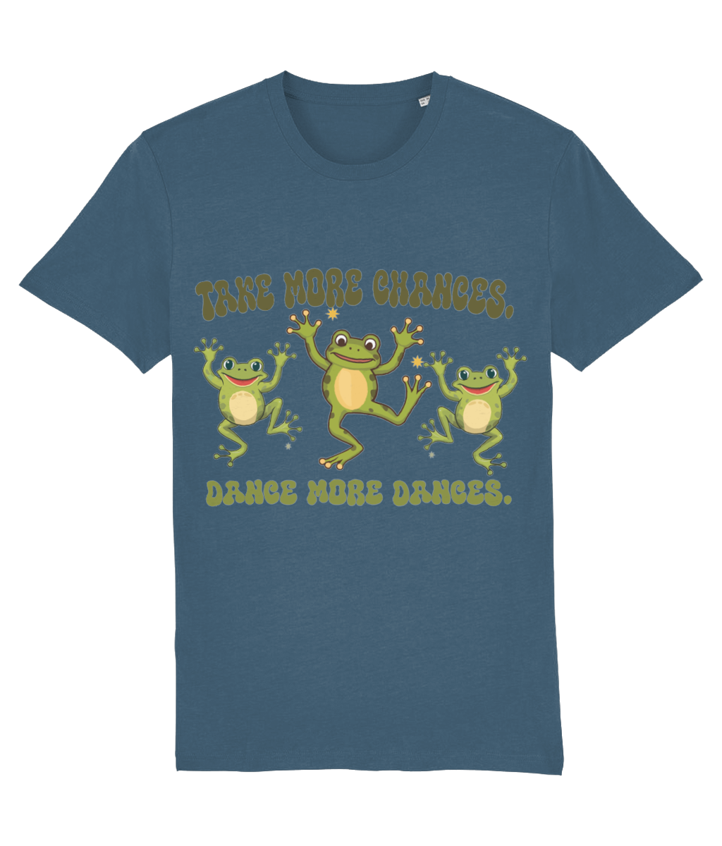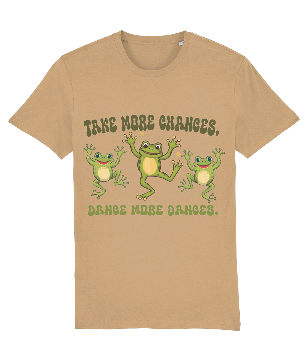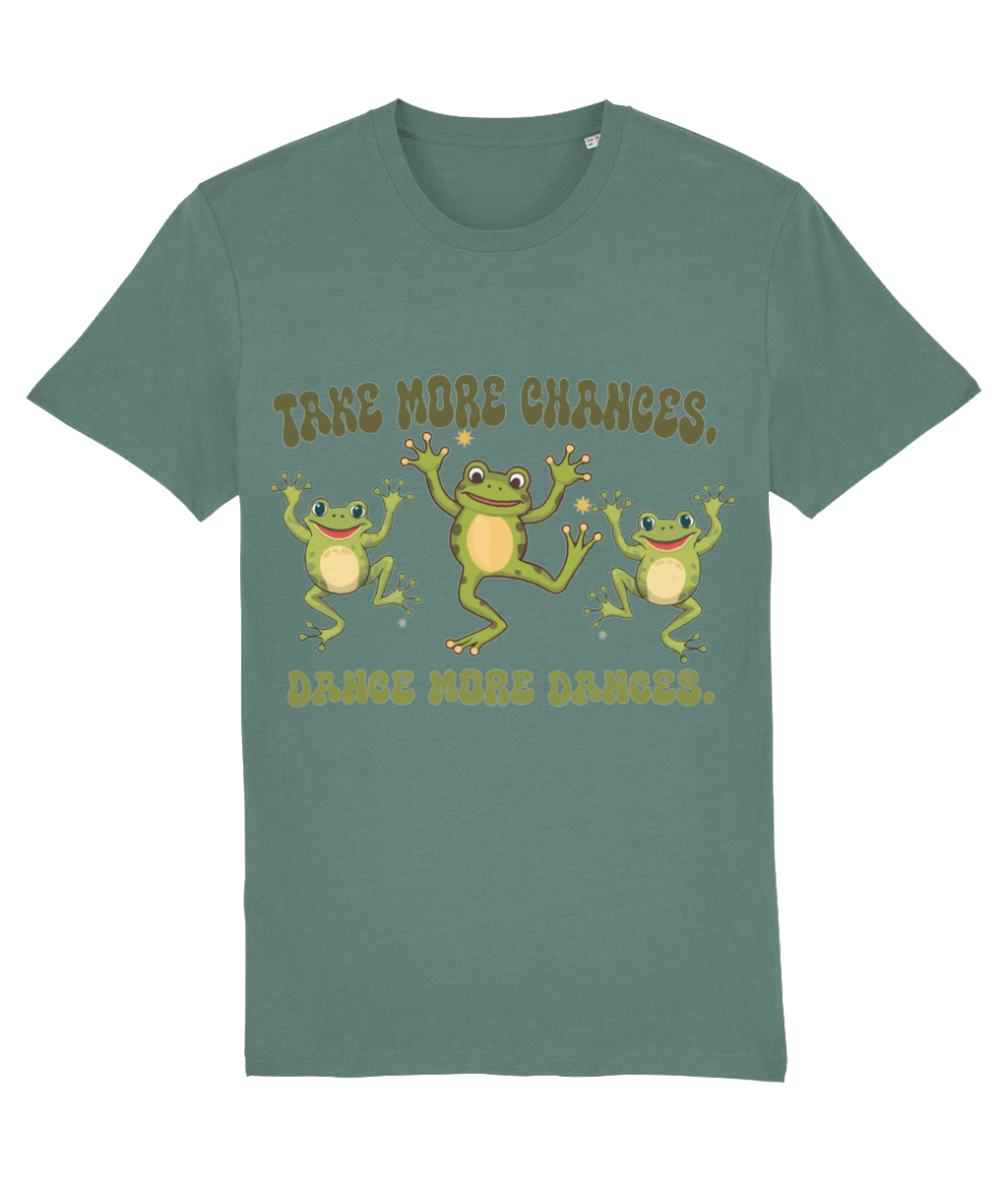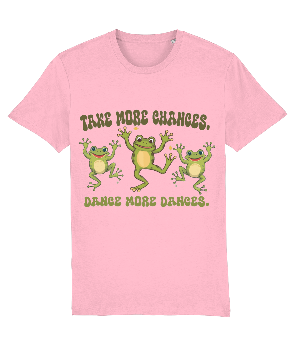Cu un design jucăuș, trei broscuțe puse pe dans și un mesaj motivațional, acest tricou este un statement pentru toți cei care cred că dansul înseamnă libertate, bucurie și curaj!