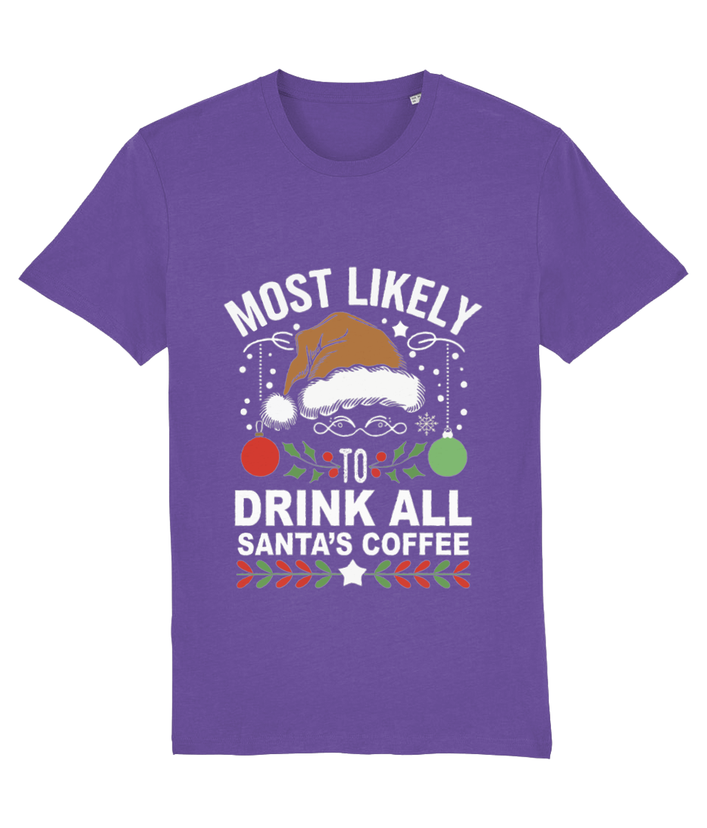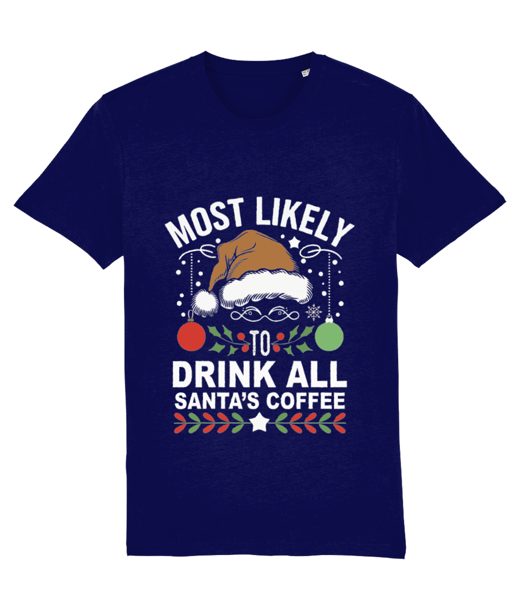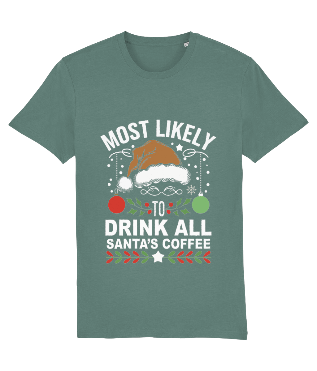 🎅☕ Tricou Bărbați „Most Likely to Drink All Santa’s Coffee” – Pentru Iubitorii de Cafea și Sărbători! 🎄🎁
