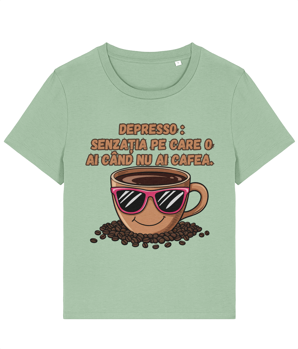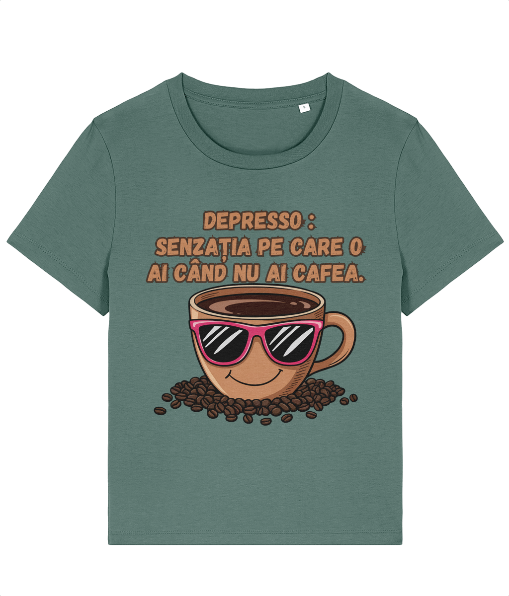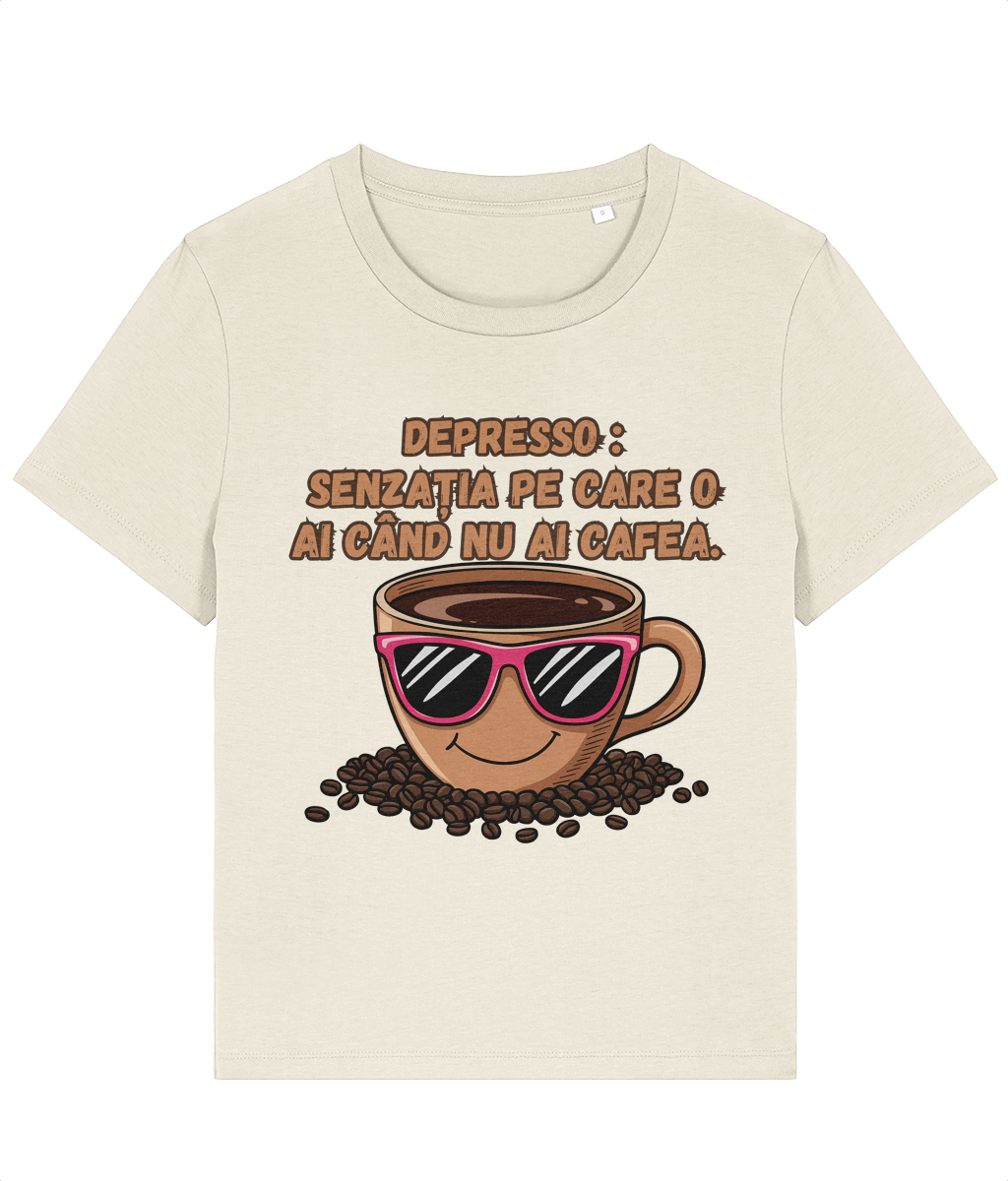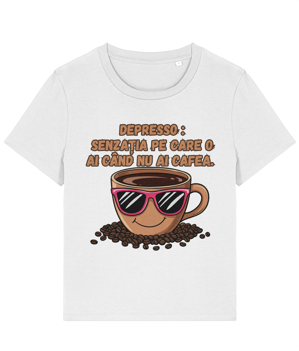 Tricou Damă – „Depresso: Senzația pe care o ai când NU ai cafea”
