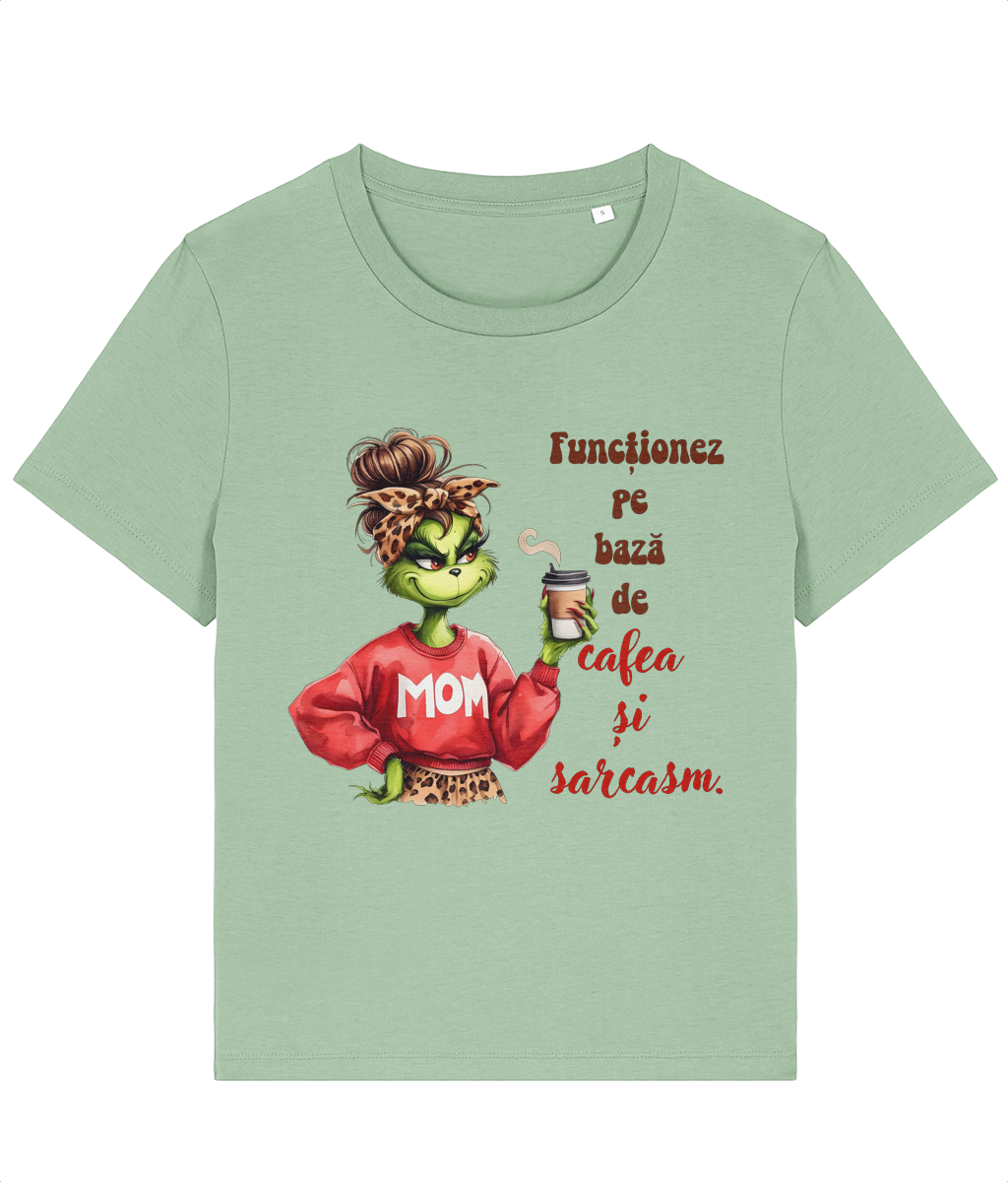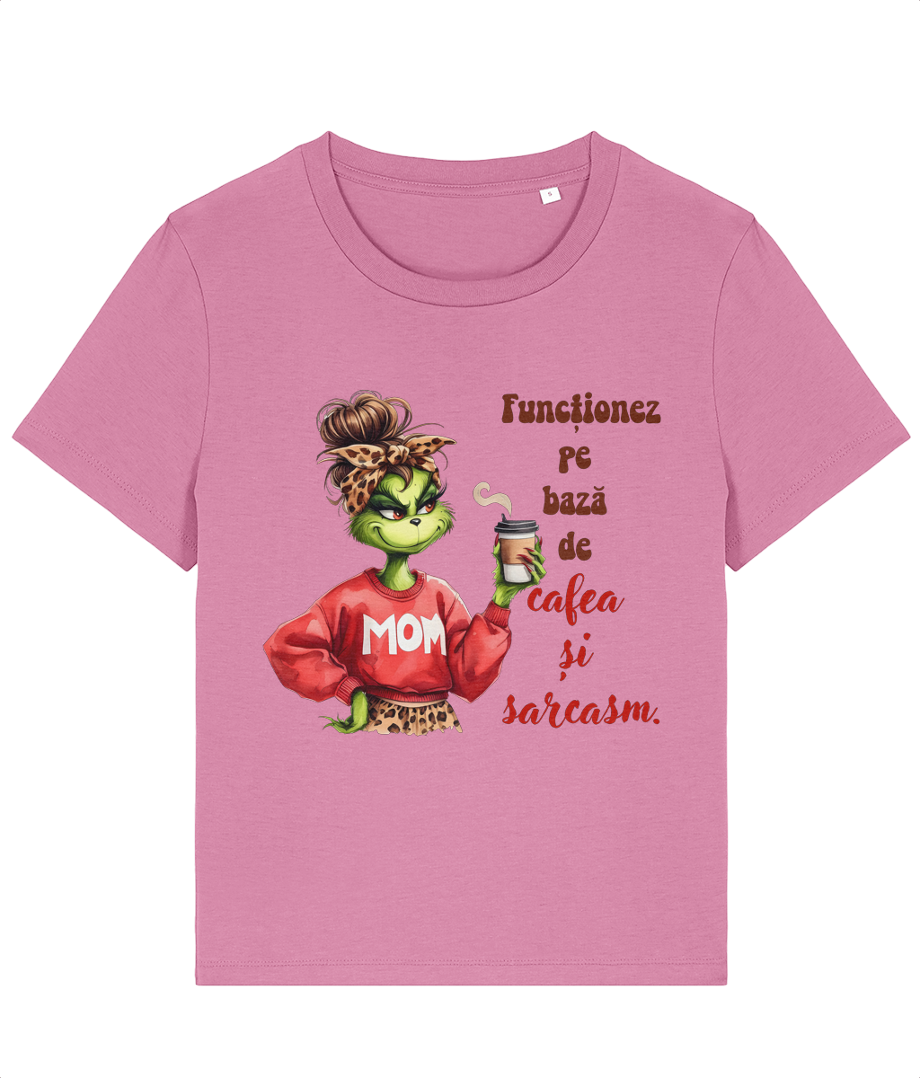 Tricou damă „Funcționez Pe Bază De Cafea Și Sarcasm”