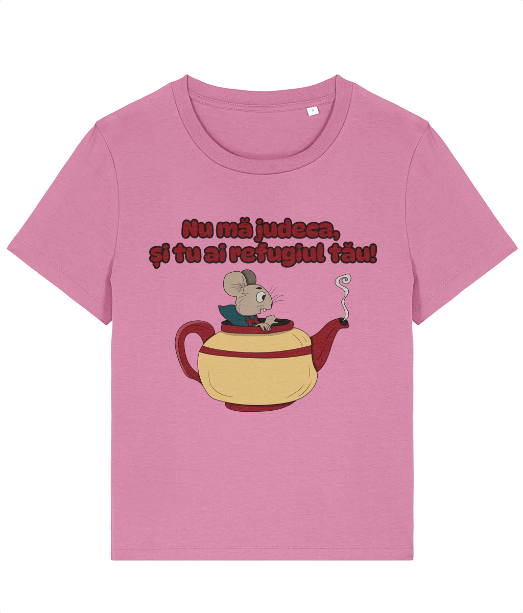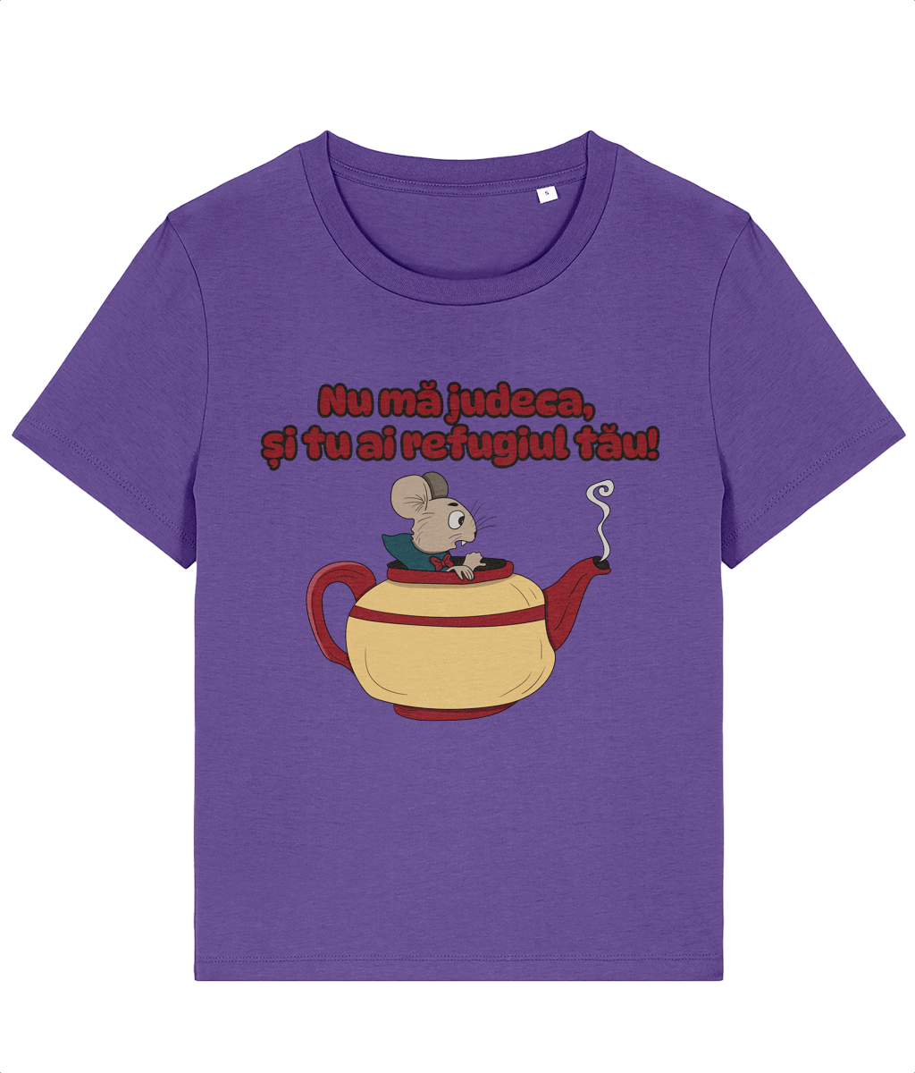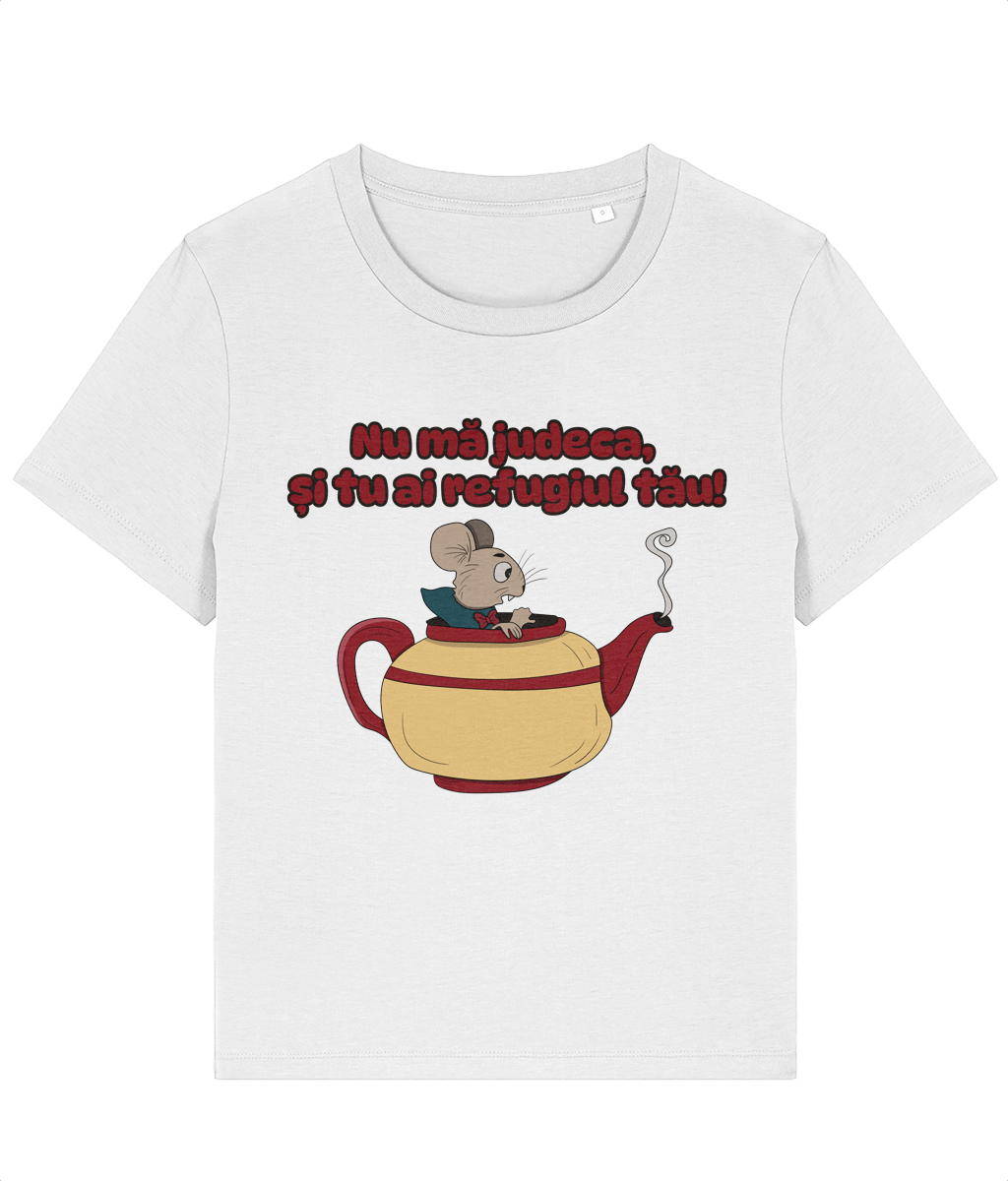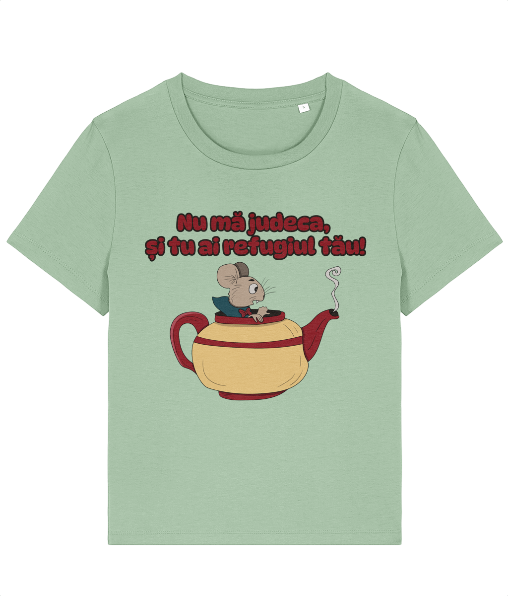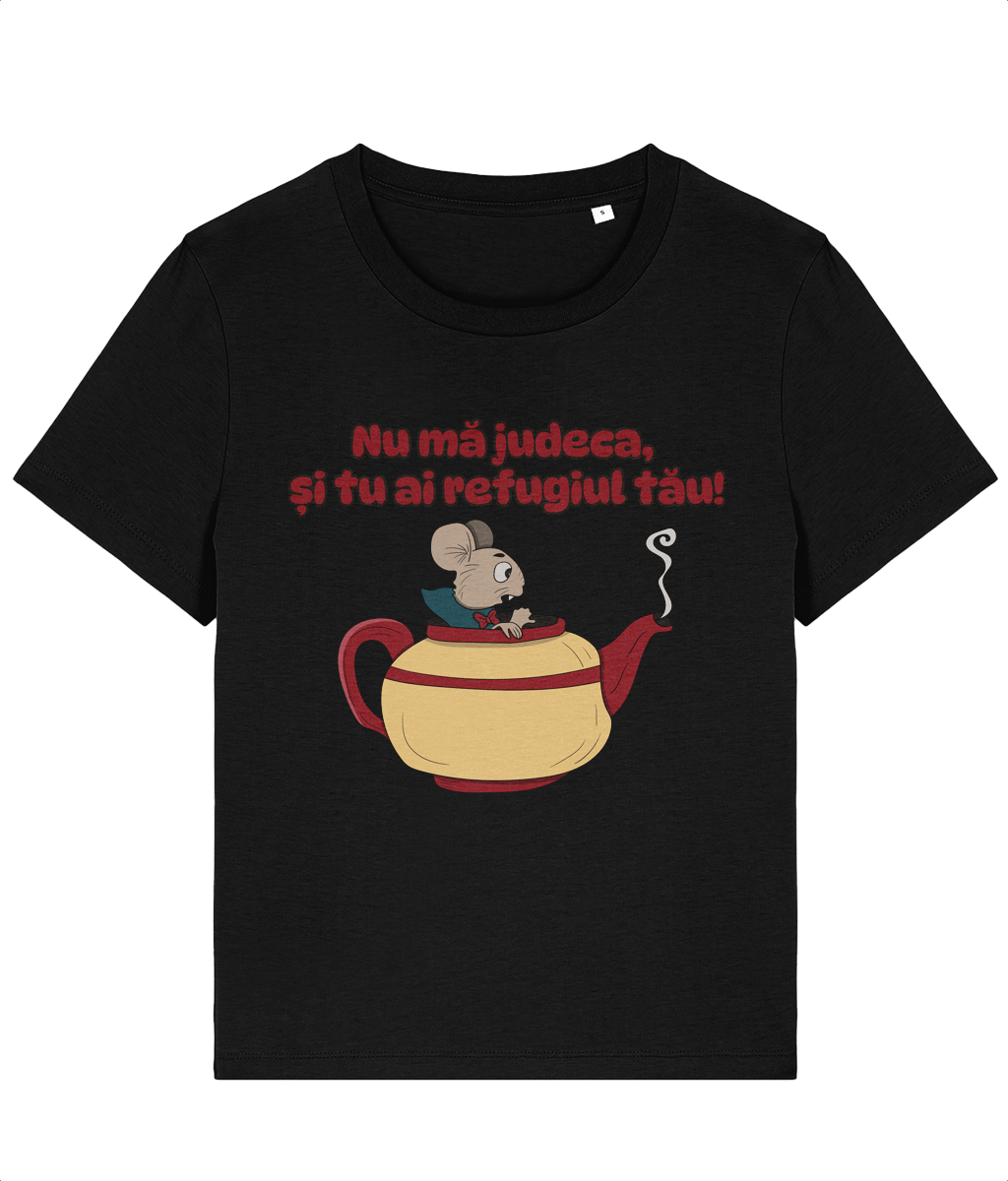Tricou „Nu mă judeca, și tu ai refugiul tău” – Cadoul perfect pentru iubitoarele de ceai sau cafea