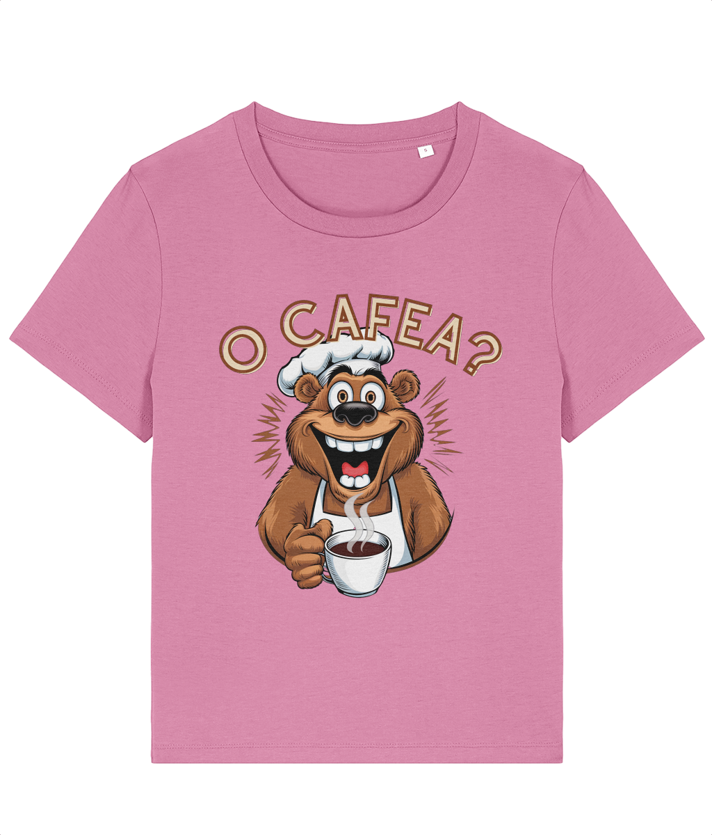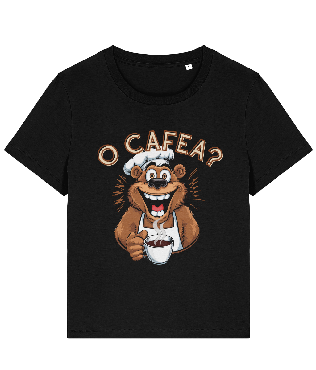 Tricou Premium Damă „O Cafea?” – Un Cadou Plin de Căldură și Bună Dispoziție! ☕🐻