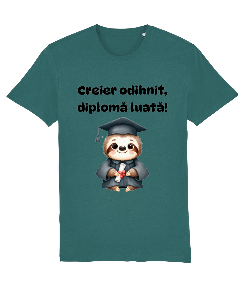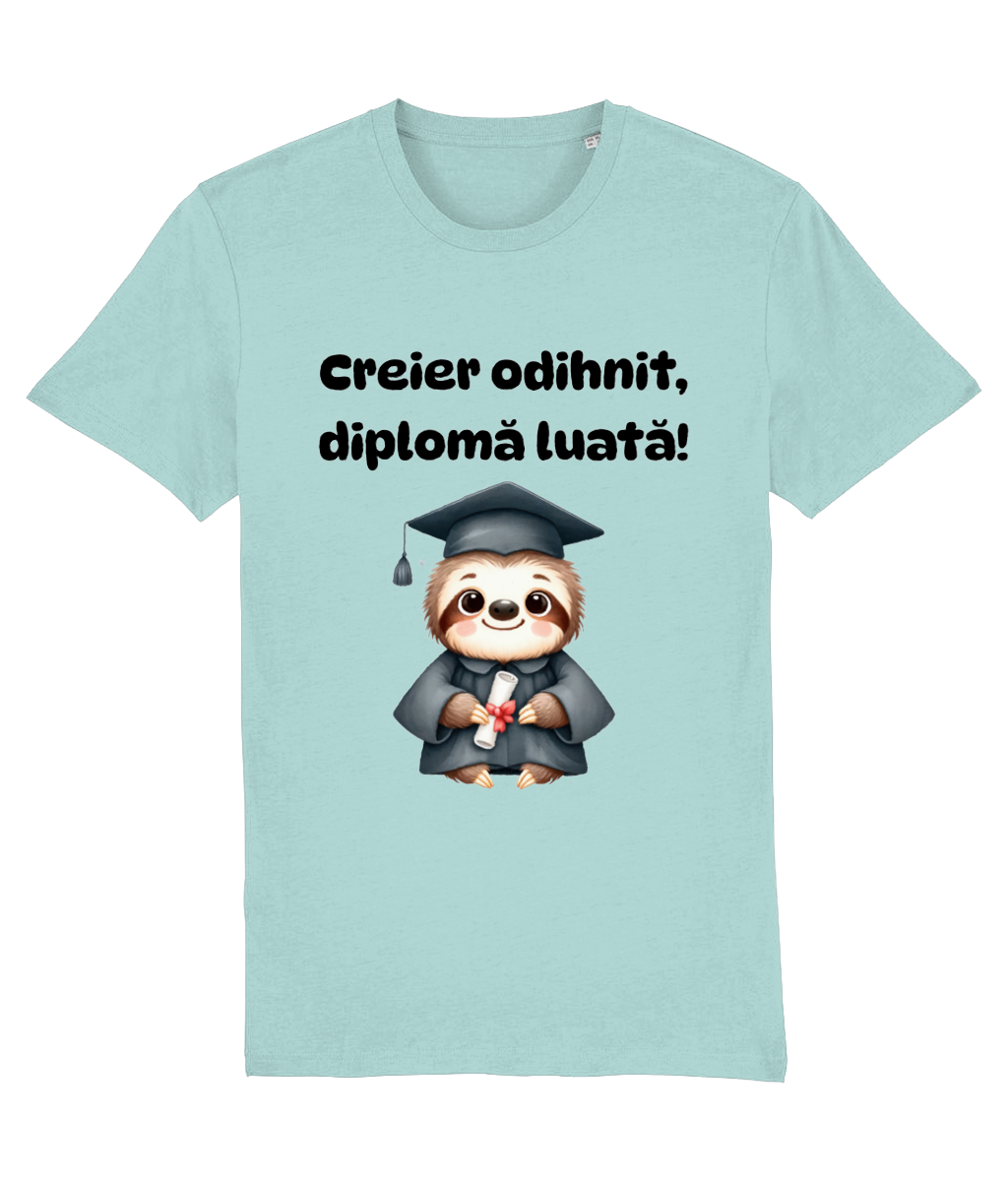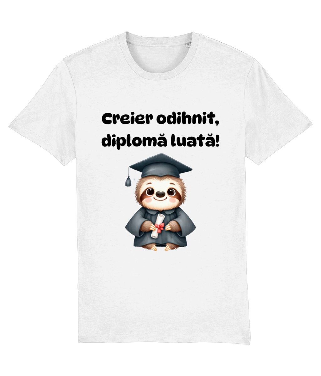🦥 Tricou „Creier odihnit, diplomă luată” – Leneș, dar eficient