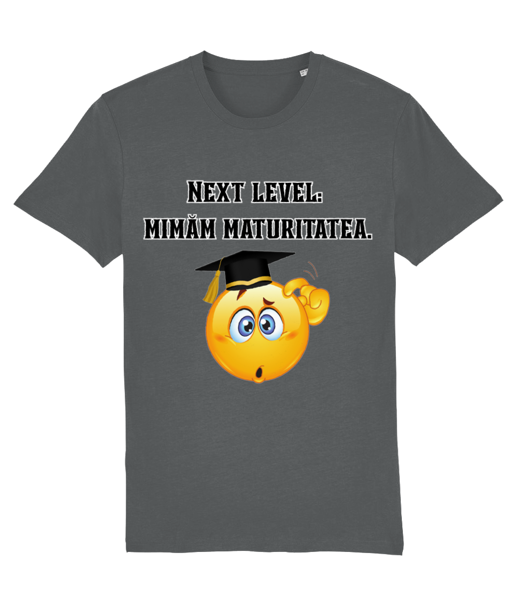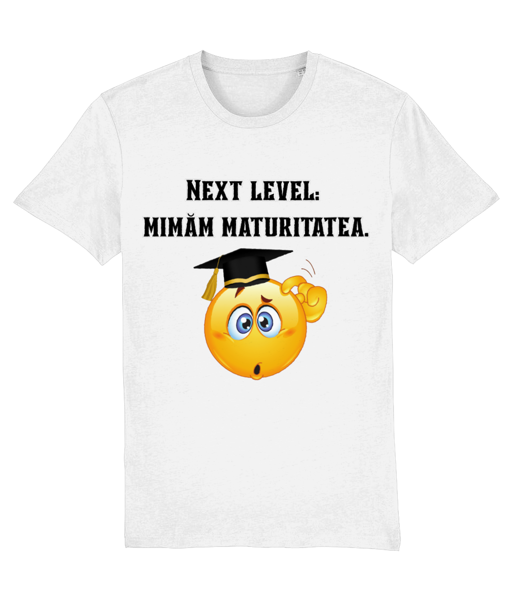 Maturitatea nu vine odată cu o diplomă… vine cu facturi, responsabilități și alegeri zilnice în fața frigiderului gol. Dar cine spune că nu putem mima puțin? Tricoul „Next level: mimăm maturitatea”, cu un smiley confuz și o toca de absolvent pe cap, e perfect pentru cei care se întreabă „Și acum ce fac?” după ce au terminat școala. Un cadou genial pentru cei care știu că viața de adult e, de fapt, o improvizație continuă.