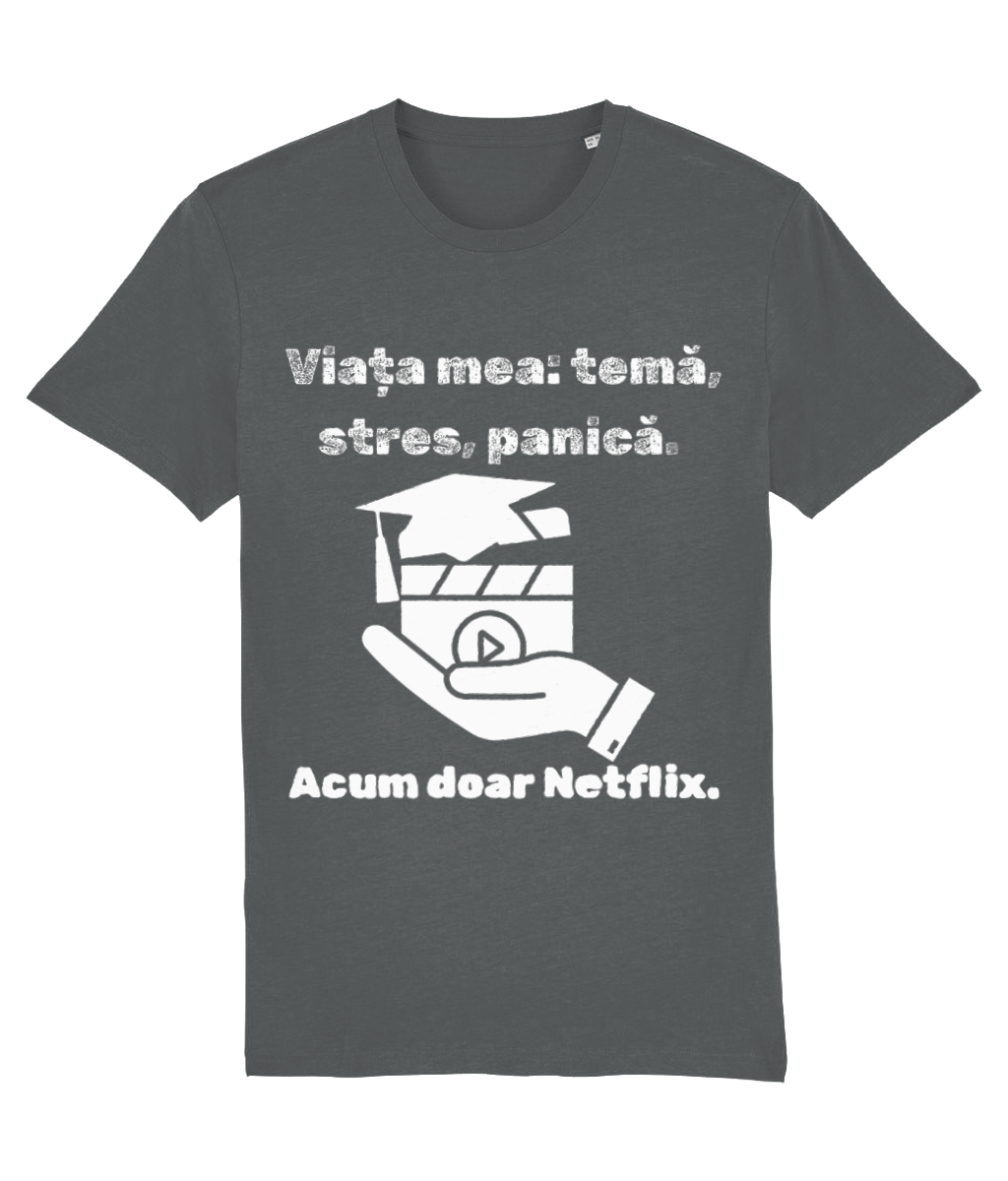 🎬 Tricou „Viața mea: temă, stres, panică. Acum doar Netflix” – Scenariul perfect după absolvire
