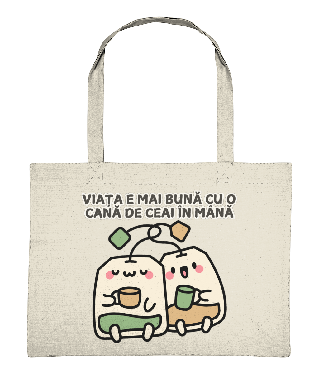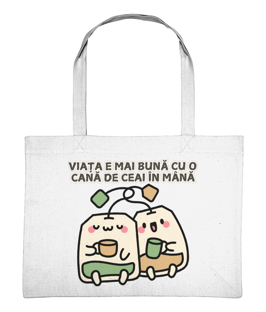 Sacoșa de Cumpărături „Viața e mai bună cu o cană de ceai în mână” – Cadoul ideal pentru iubitorii de ceai