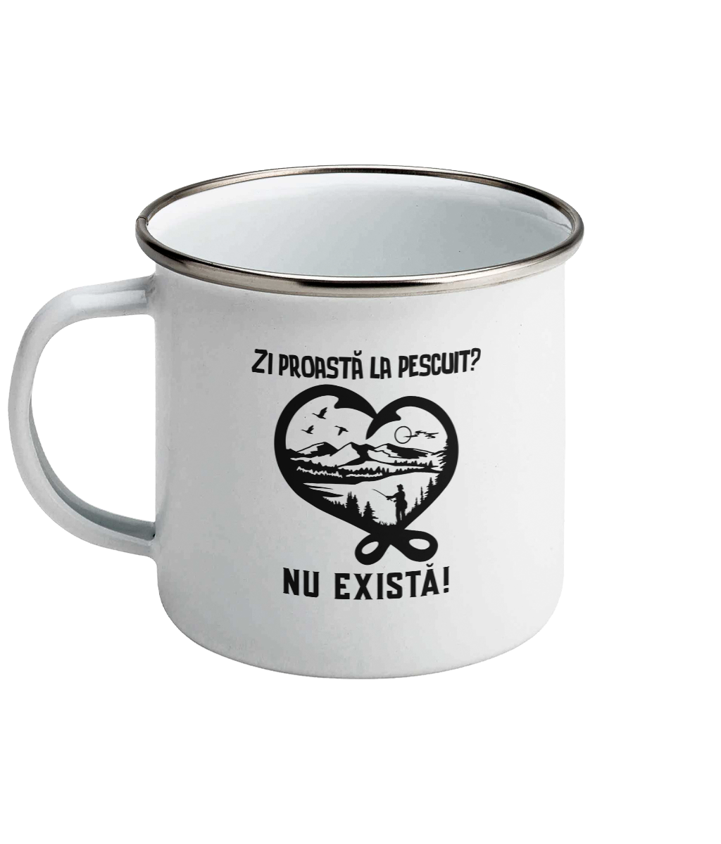 Cană emailată „Zi proastă la pescuit? Nu există”